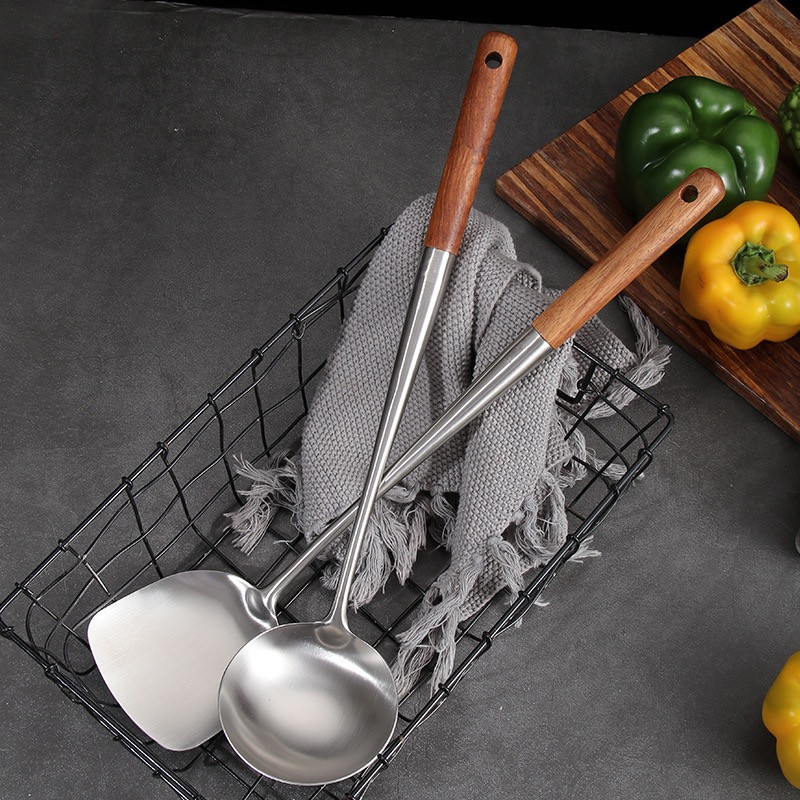 铁人304不锈钢炒勺铁锅炒铲家用炒菜锅铲子长木柄厨师专用铁锅铲