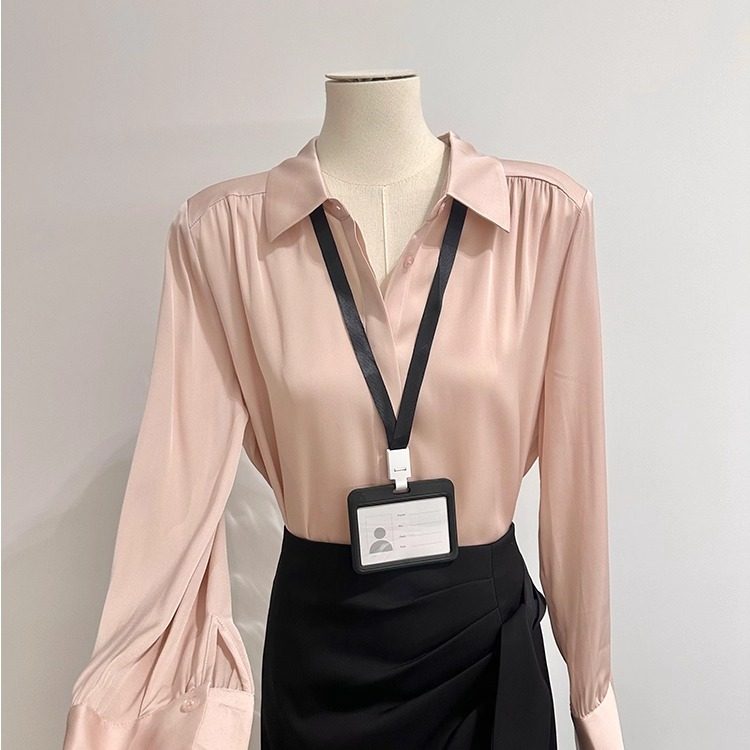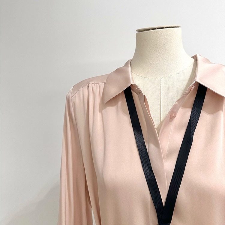 法式轻奢职场通勤压褶真丝衬衫