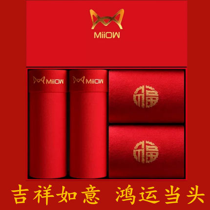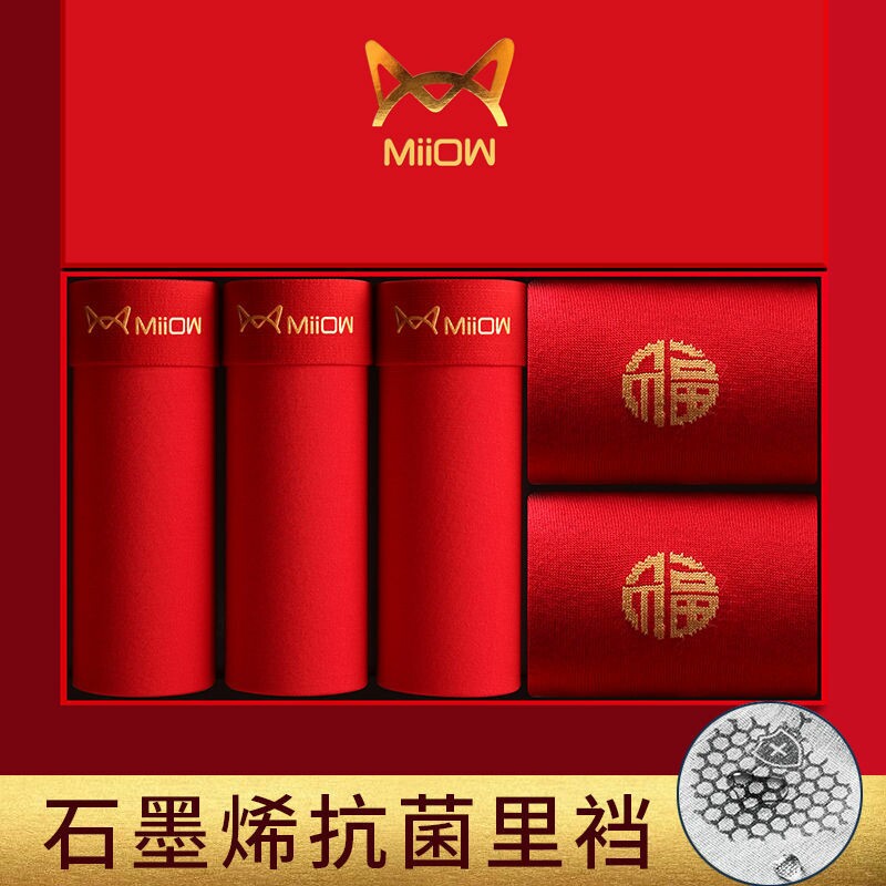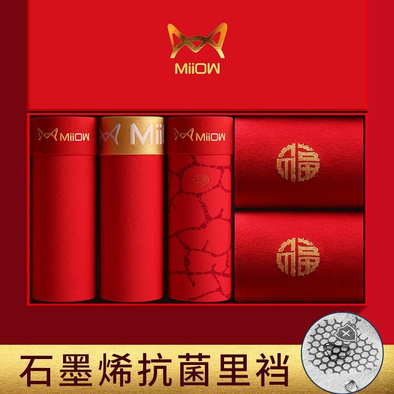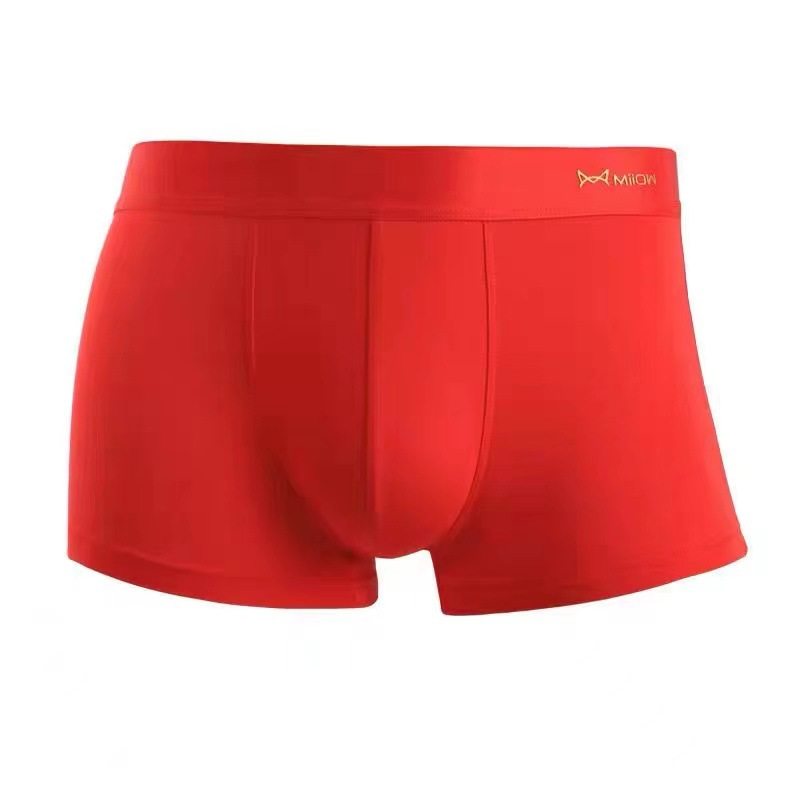 猫人本命年男士内裤平角裤纯色莫代尔棉大红色男生结婚礼物四角裤