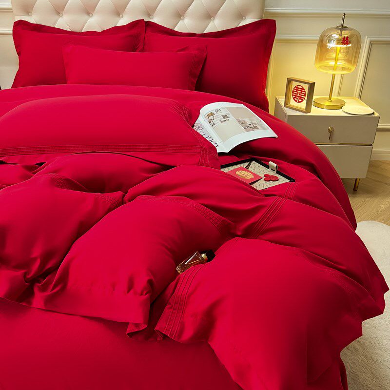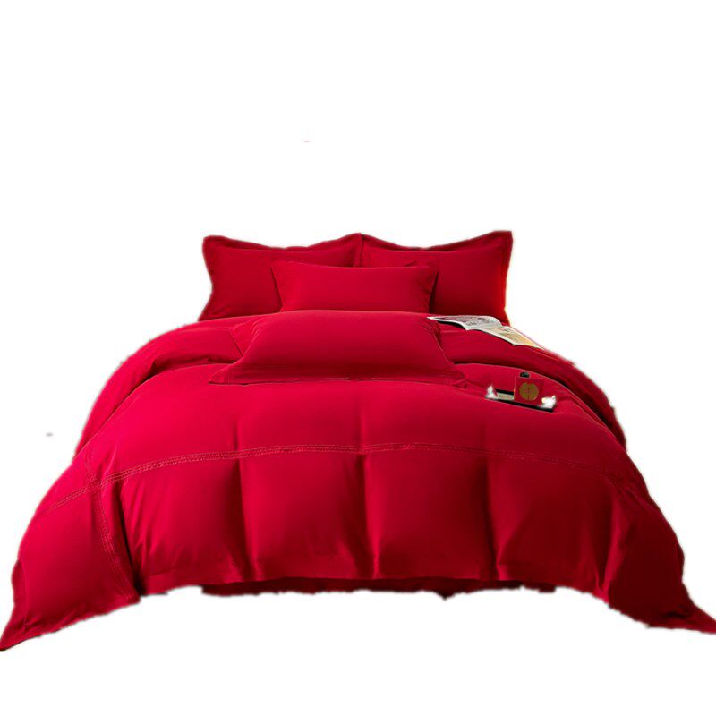 简约结婚铺床上用品100亲肤磨毛秋冬酒红色N床单款四件套婚庆纯色