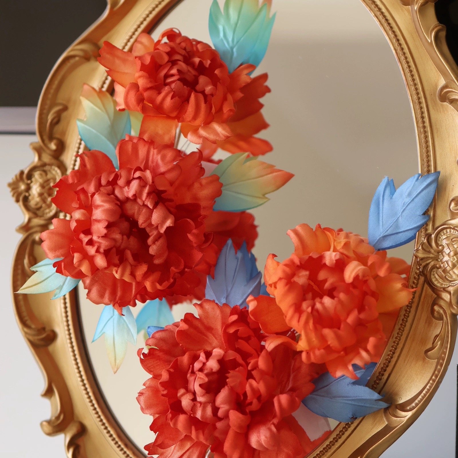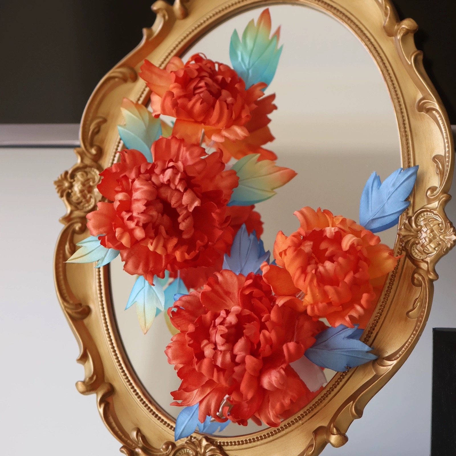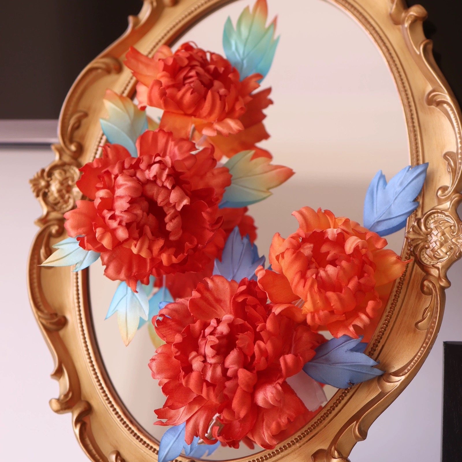 原创 长安忆 真丝烫花牡丹唐风发饰发夹仙气软杆婚嫁汉服配饰