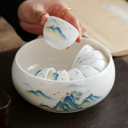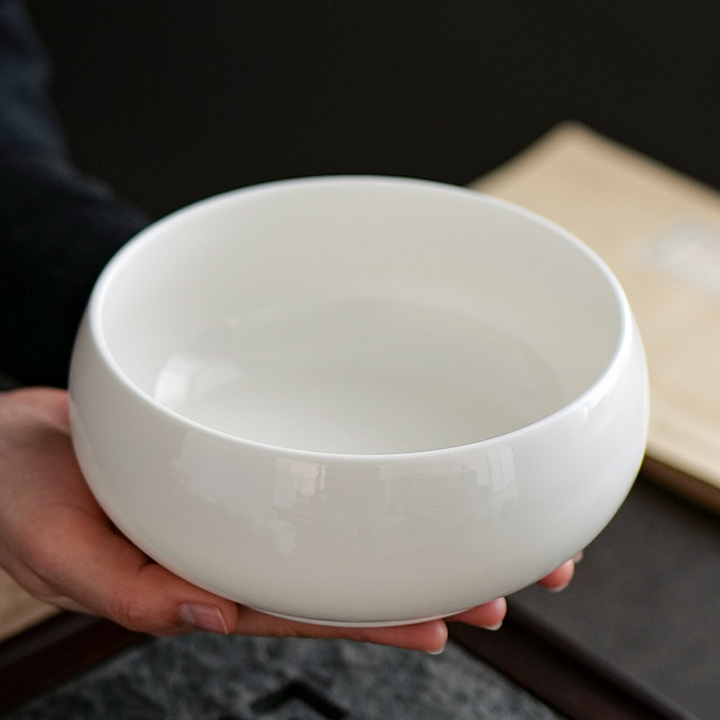 白瓷茶洗大号中式洗茶杯配件办公室洗缸茶渣缸陶瓷茶具零配大茶碗