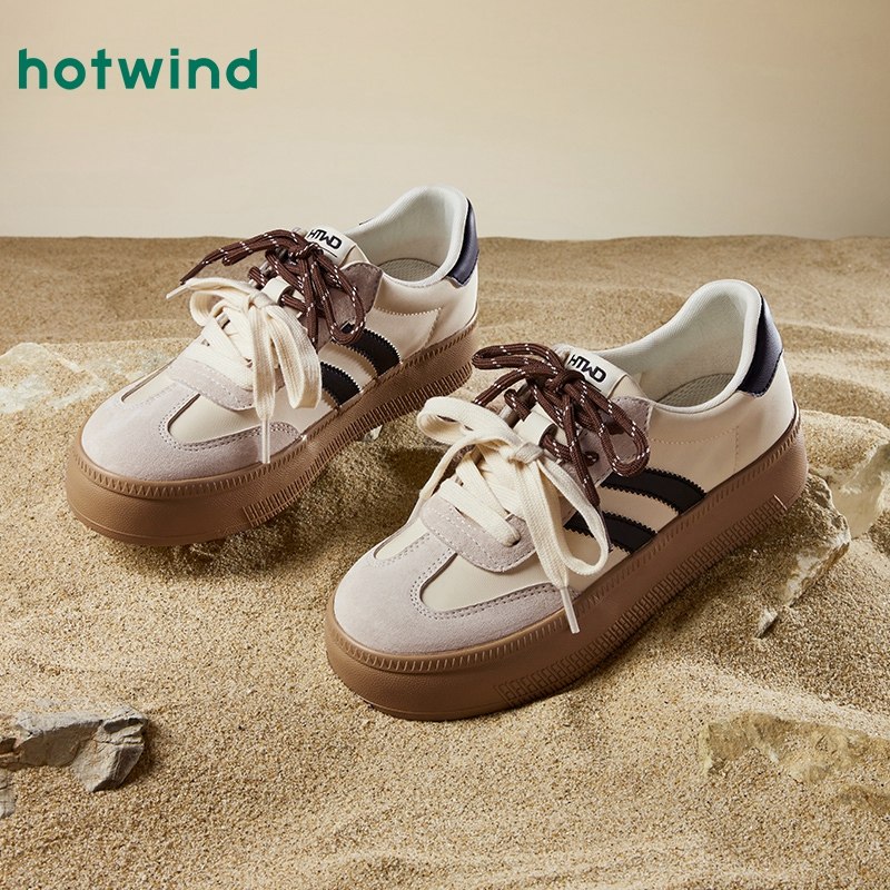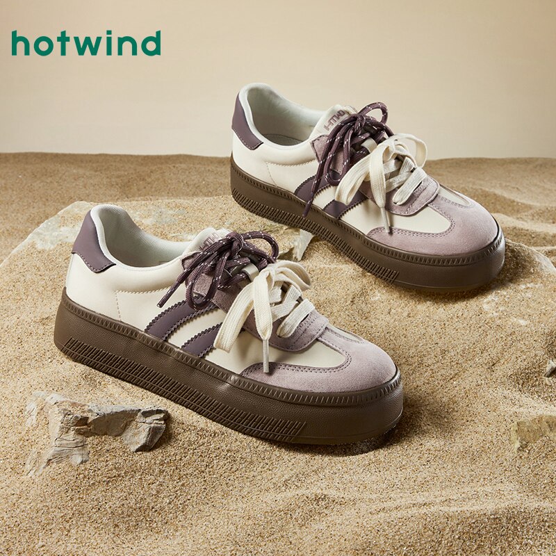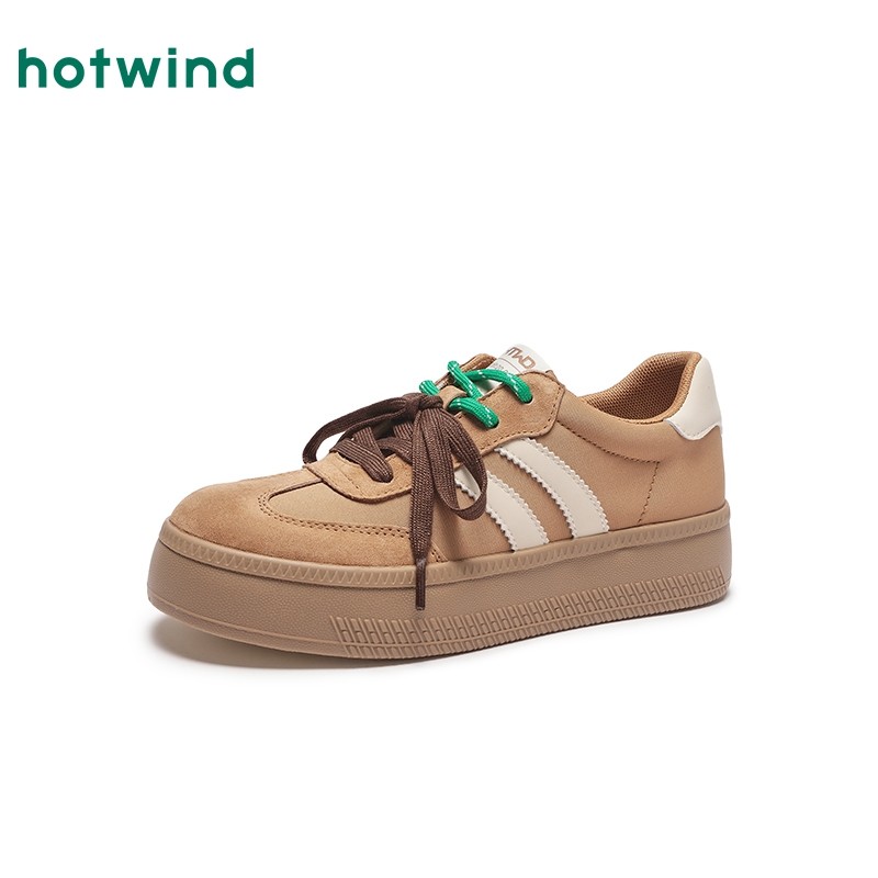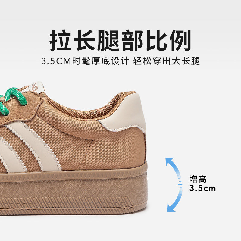 热风厚底板鞋2024年秋冬新款女士小众百搭德训鞋复古休闲鞋小个子
