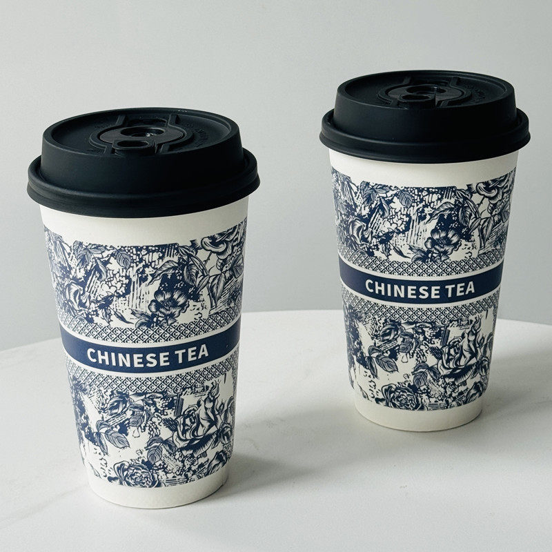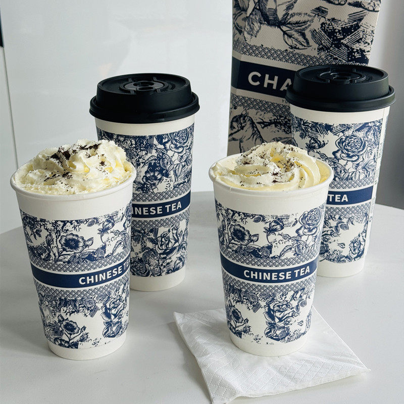 霸王茶姬同款一次性加厚奶茶纸杯中空杯咖啡杯双淋膜冷热杯子带盖