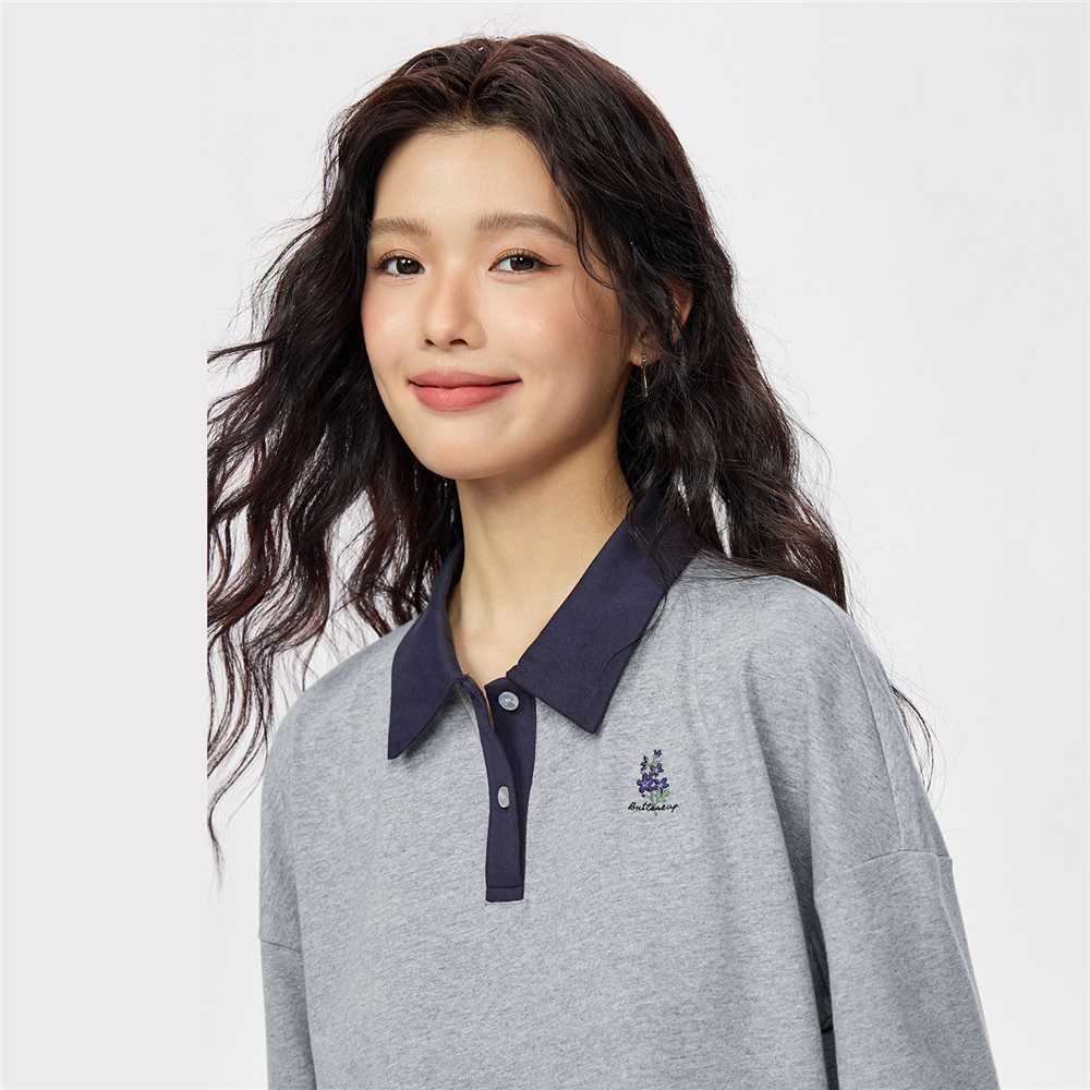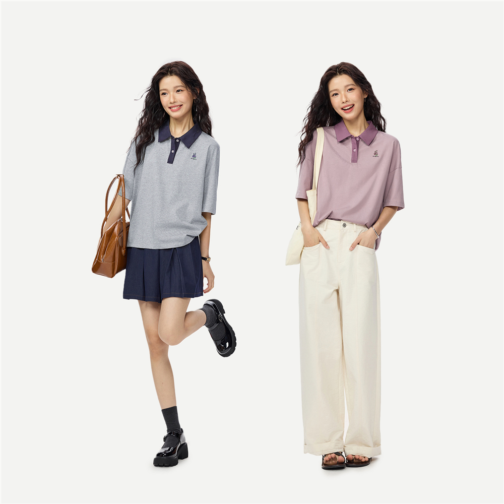 佐丹奴短袖Polo衫女新款纯棉刺绣宽松撞色翻领休闲上衣女13315651