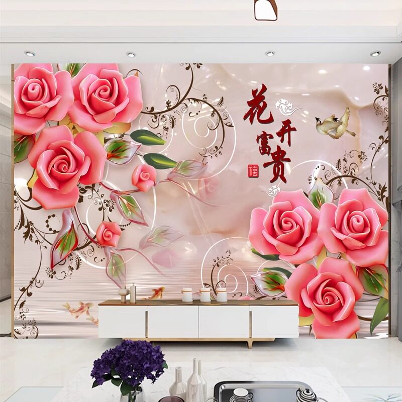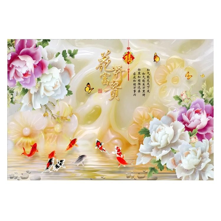 自粘装饰画中式花开富贵玉雕壁画客厅沙发电视背景墙贴画贴纸壁纸