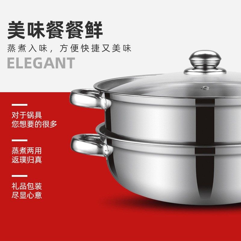 厂家直供 粤帝斯不锈钢层蒸锅28cm加厚多功能三层汤蒸锅 礼品