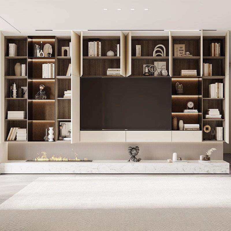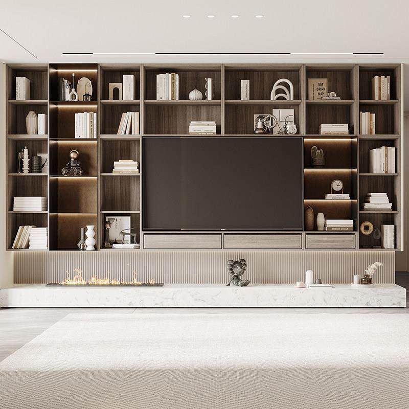欧派电视柜定制客厅家用电视背景墙一体满墙书架书柜收纳储物柜