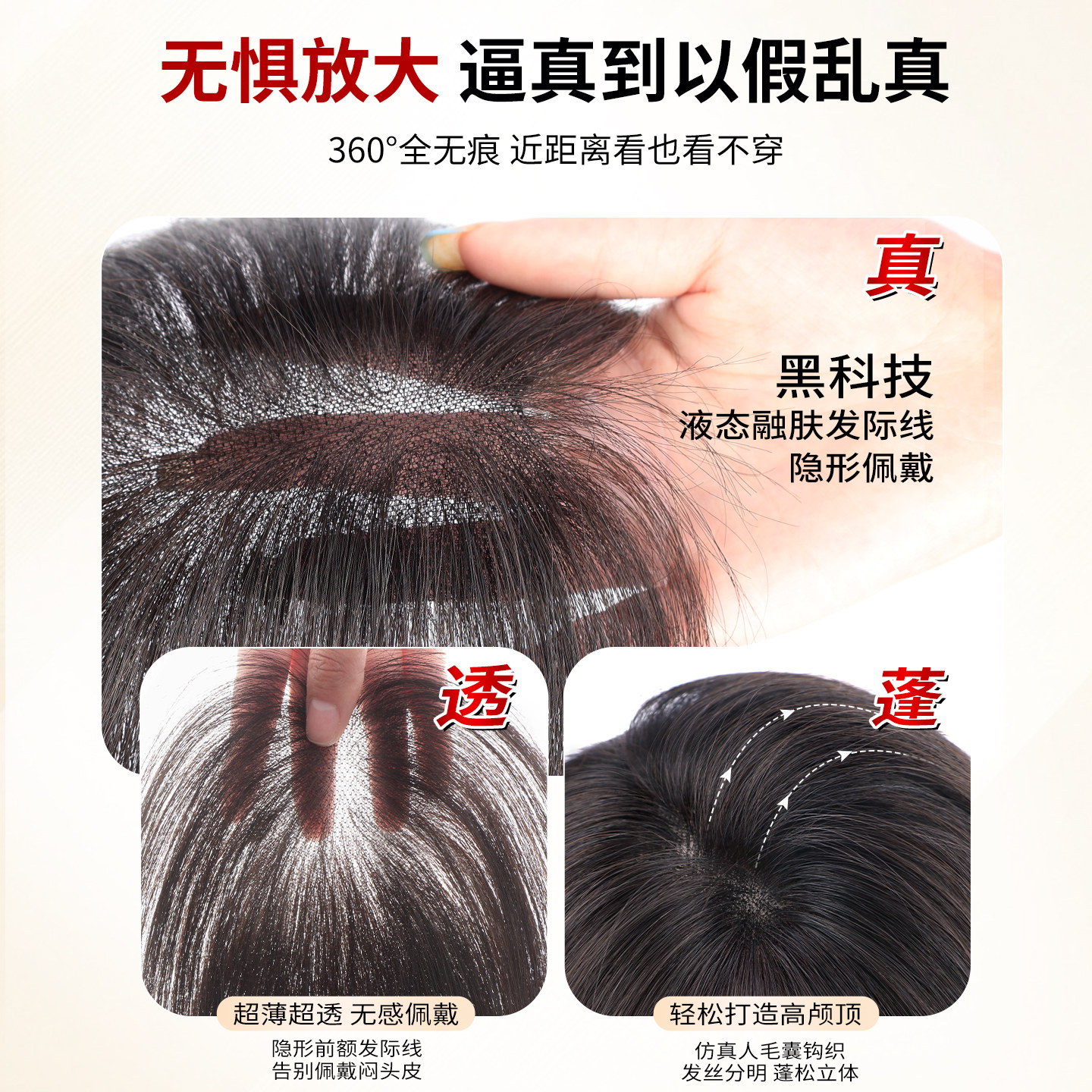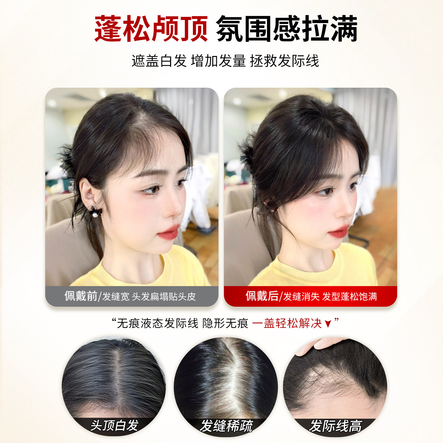 假发女片头顶增发量蓬松仿真发颅顶遮白发自然隐形无痕刘海补发片