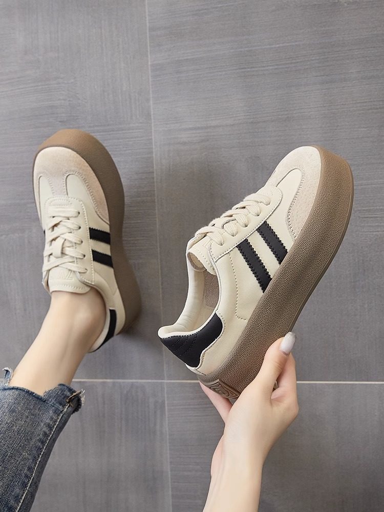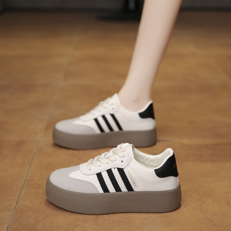 厚底德训鞋女2025春季新款真皮软底百搭小白鞋配裙子休闲运动板鞋