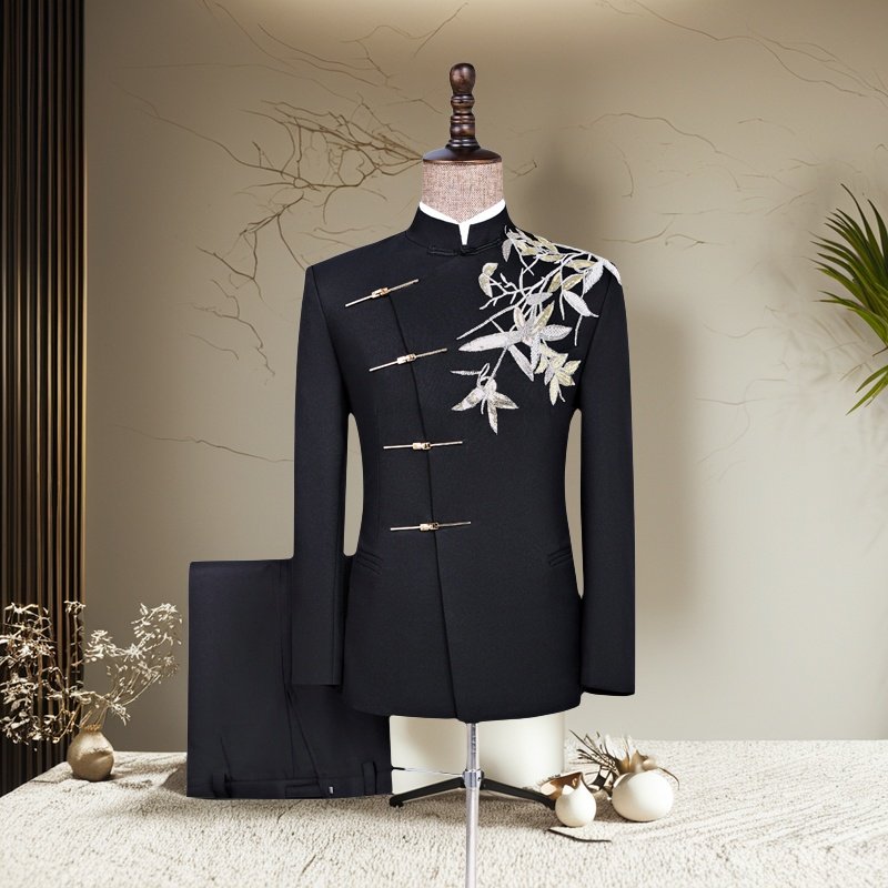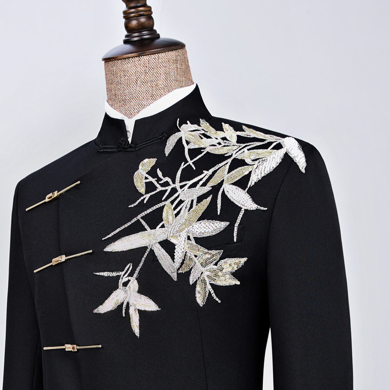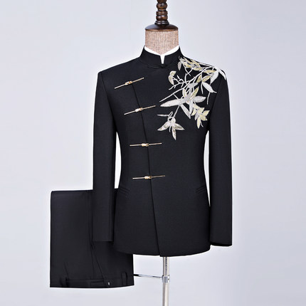 新中式男士订婚西装国风唐装中山装演出服新郎结婚礼服西服套装潮