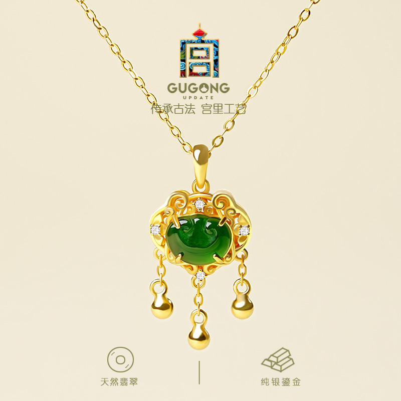 宫里上新翡翠吊坠女款玉石平安锁项链纯银新中式国风生日礼物女生