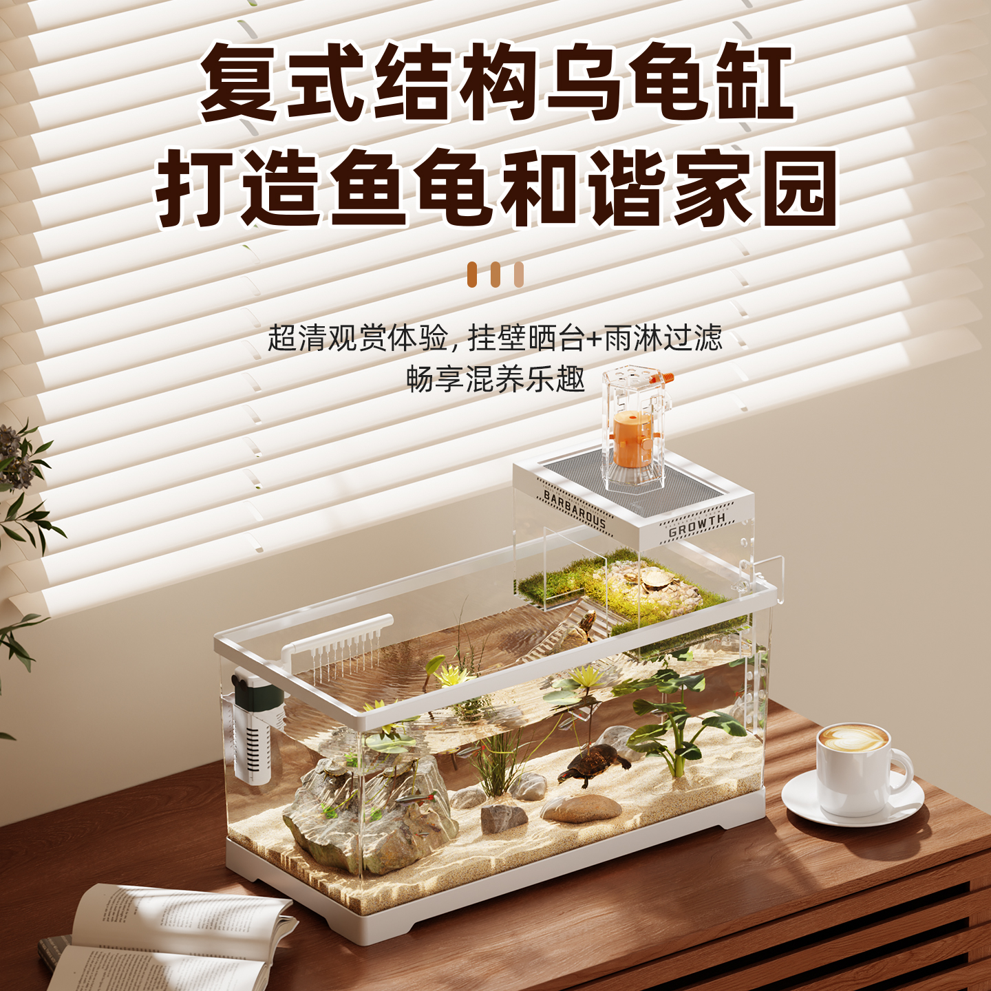 桌面亚克力乌龟缸生态造景全套家用客厅新款巴西龟养龟专用饲养箱
