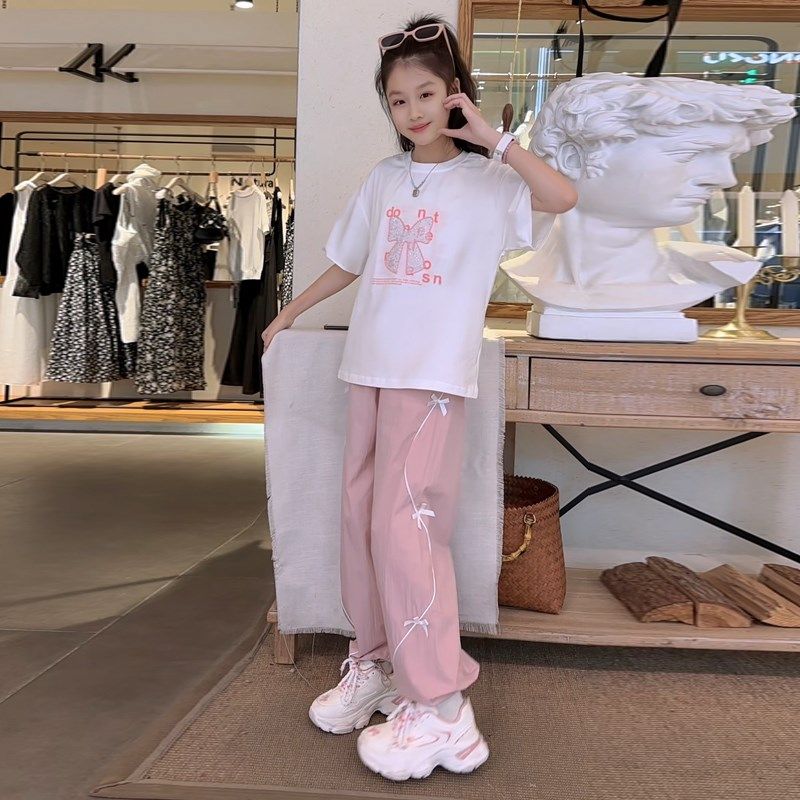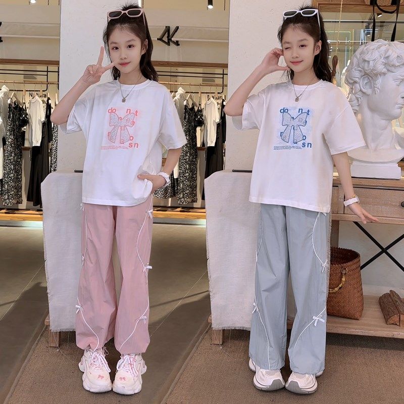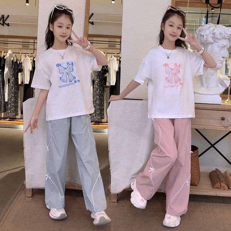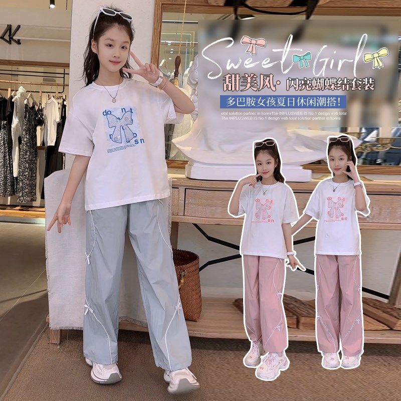 女童夏装套装2025新款短袖xT恤阔腿裤网红洋气夏季女大童两件套潮