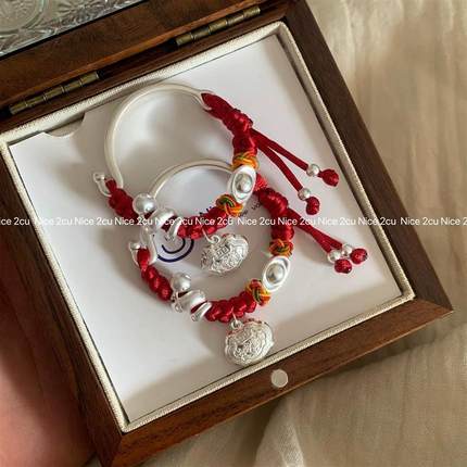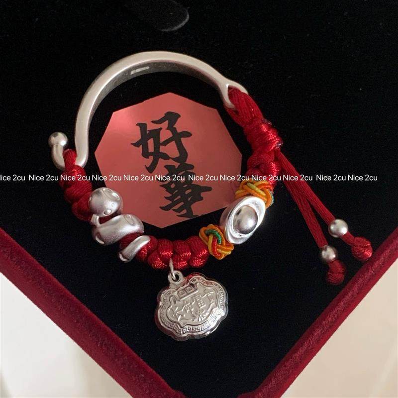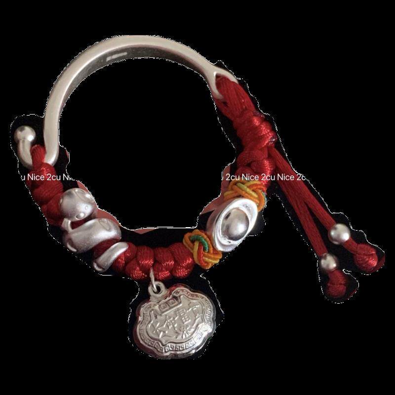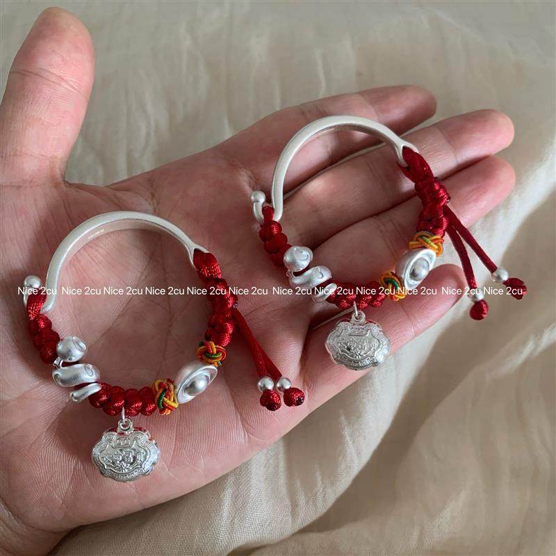 宝宝银手镯婴儿999纯银蛇宝宝长命富贵锁足银编绳满月儿童见面礼