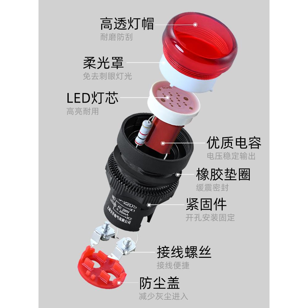 金属LED电源指示灯AD16-22D/S 工作信号灯12v24v380v红绿黄 220v