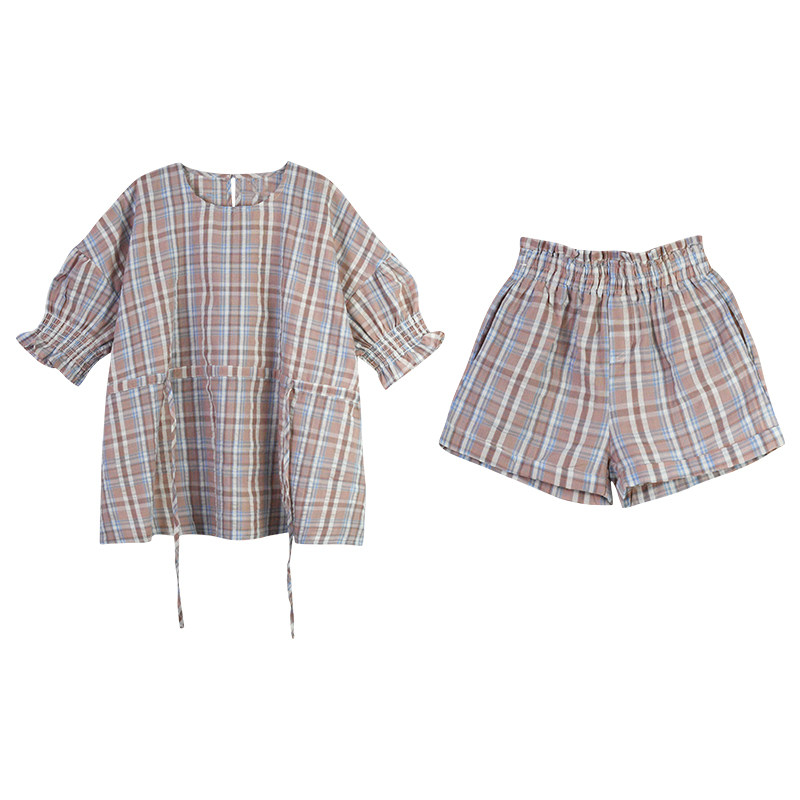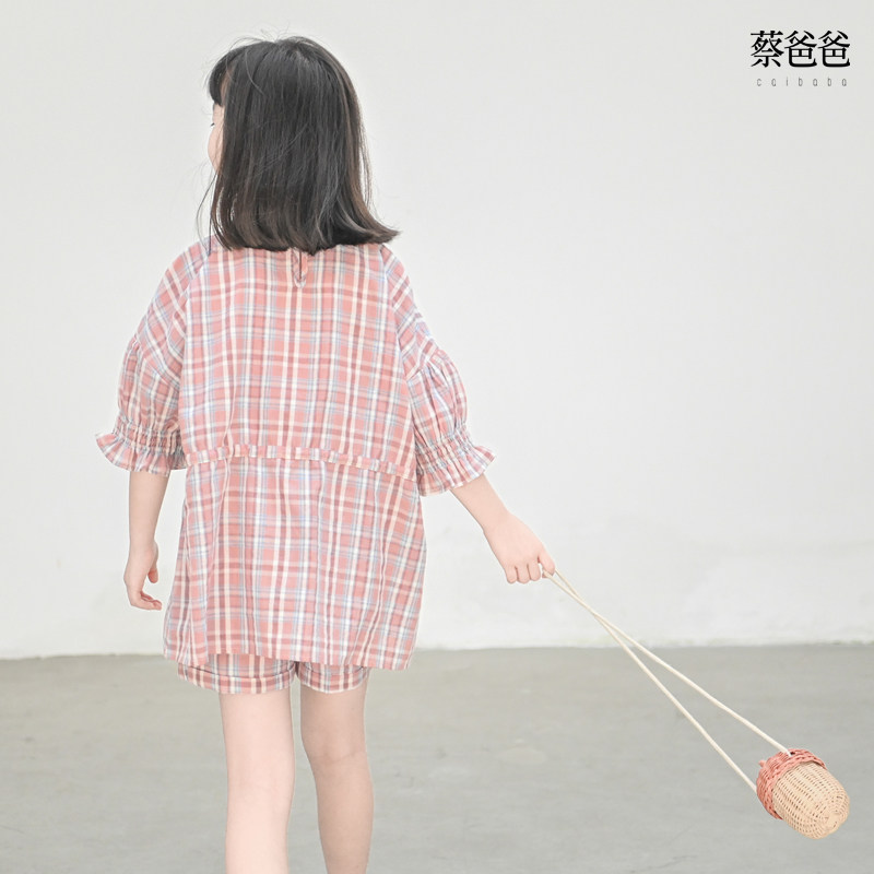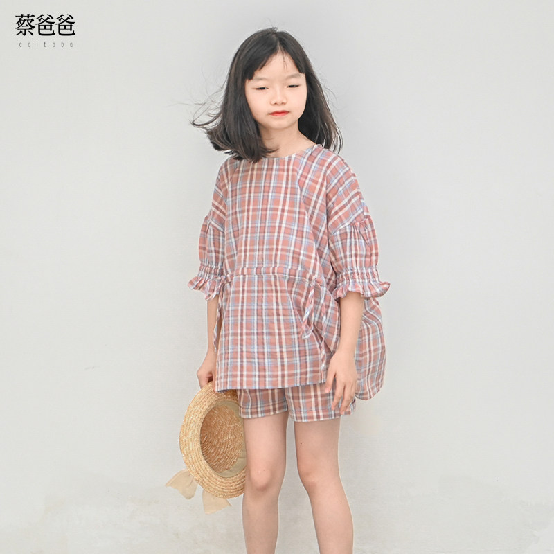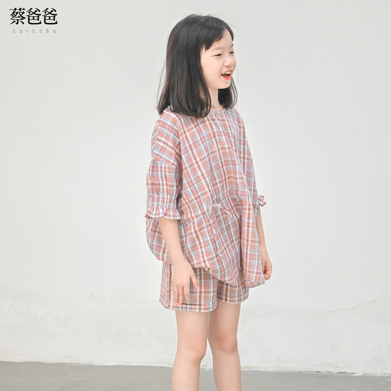 蔡爸爸原创童装2025夏装女大童格子套装宽松上衣短裤两件套装228