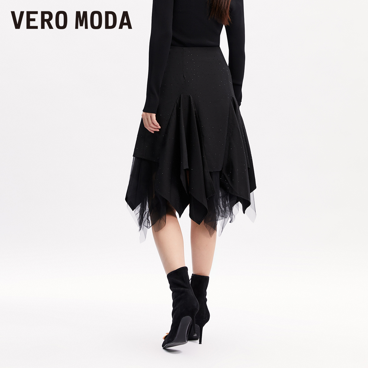 Vero Moda奥莱半身裙秋冬清仓高腰网纱拼接优雅浪漫气质裙子女