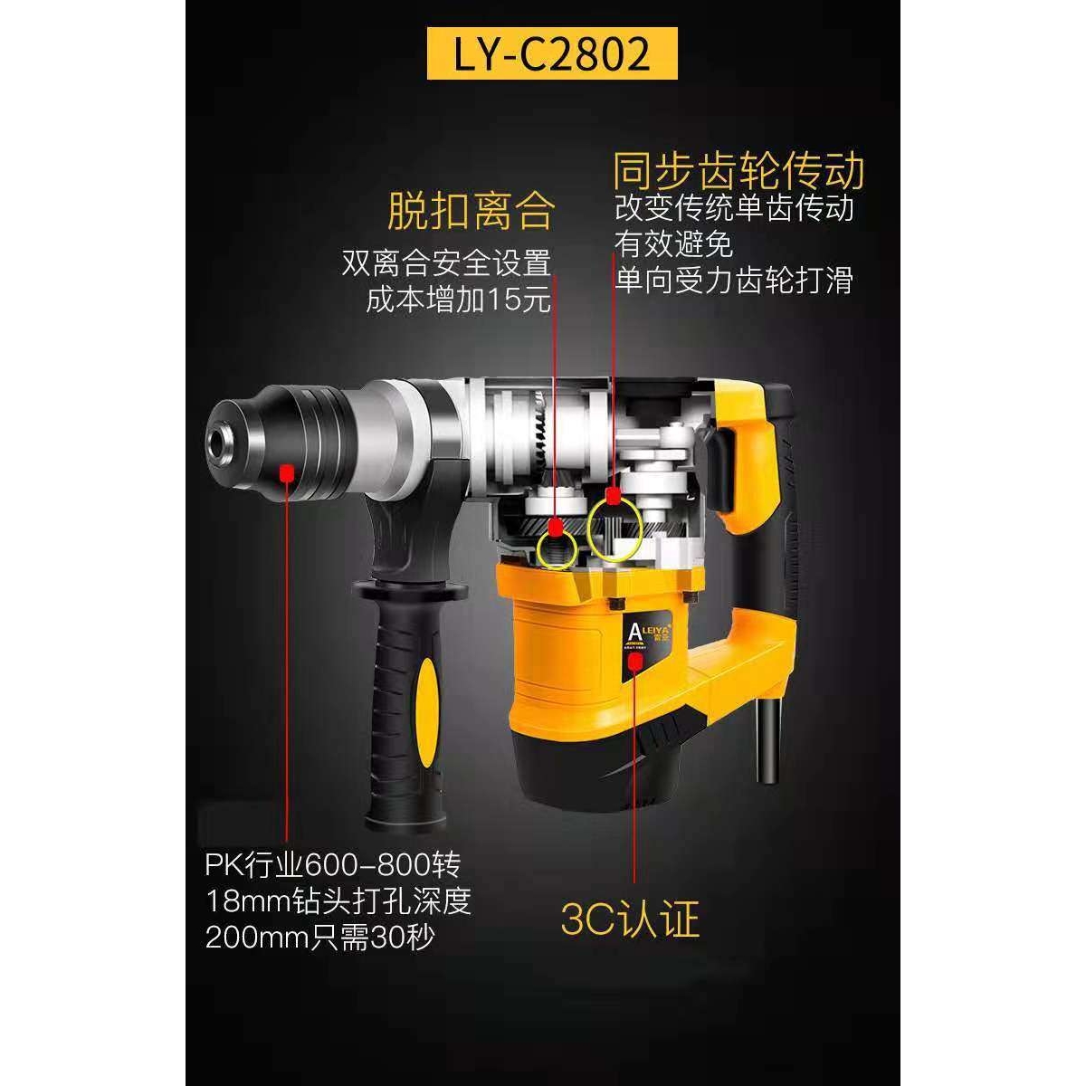 雷亚新款1050W大功率双用电锤C2802冲击钻电镐两用功能 安全离合