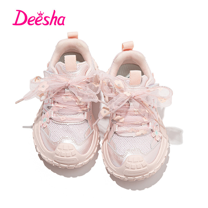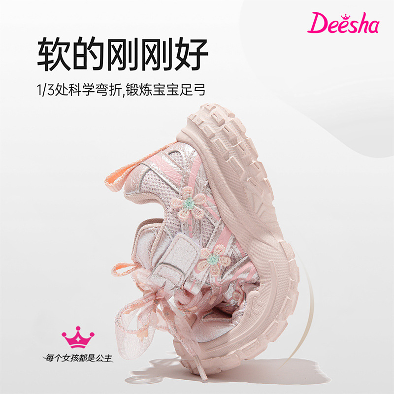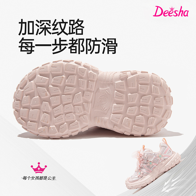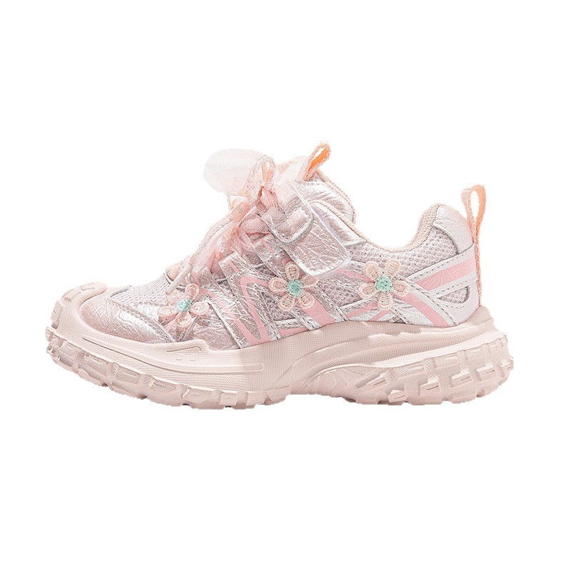 笛莎女童运动鞋2025春秋花朵网纱公主鞋eva轻底防滑粉色女孩鞋子