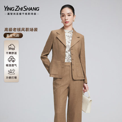 赢智尚老钱风羊毛亚麻混纺西装套装2025新款女显瘦职业装两件套