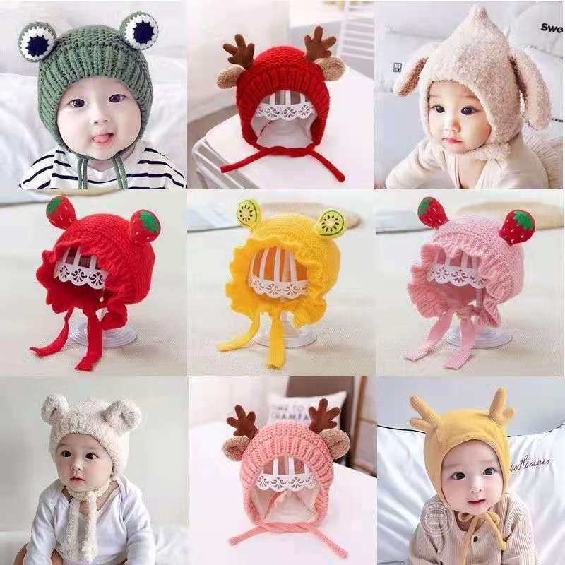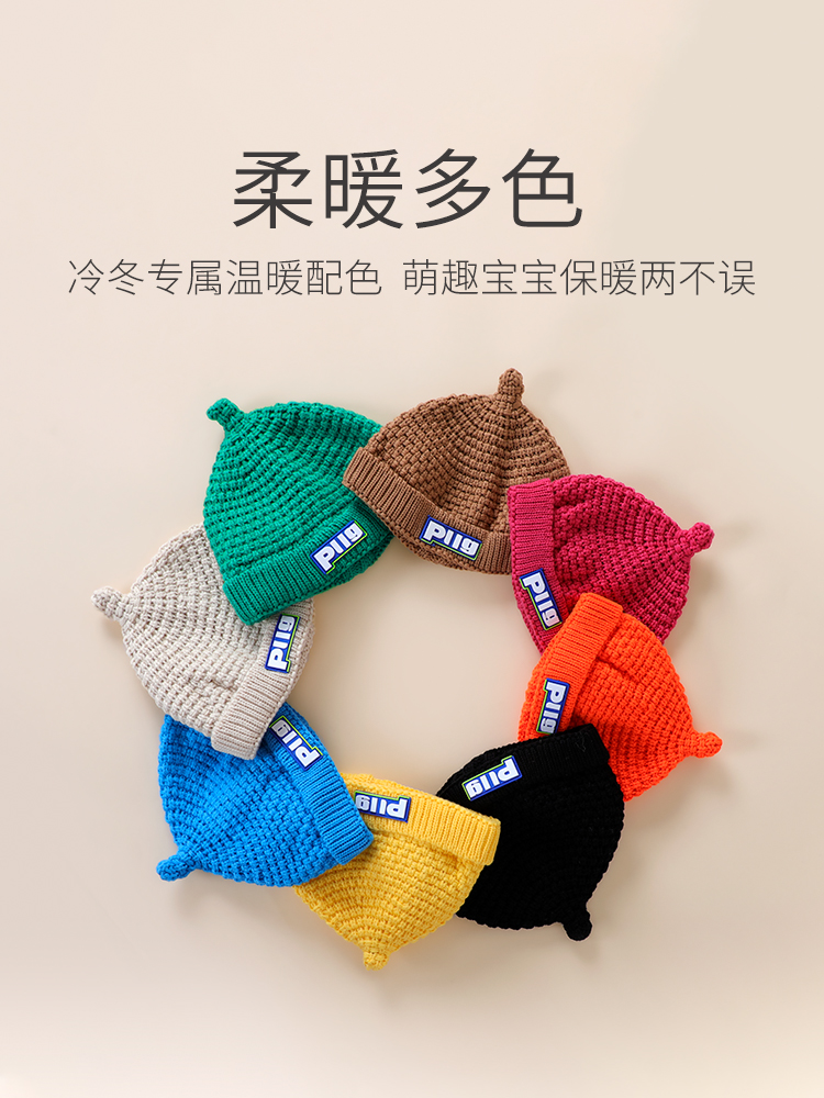 新生儿宝宝帽子春秋男女童可爱超萌婴儿护耳帽秋冬针织儿童毛线帽
