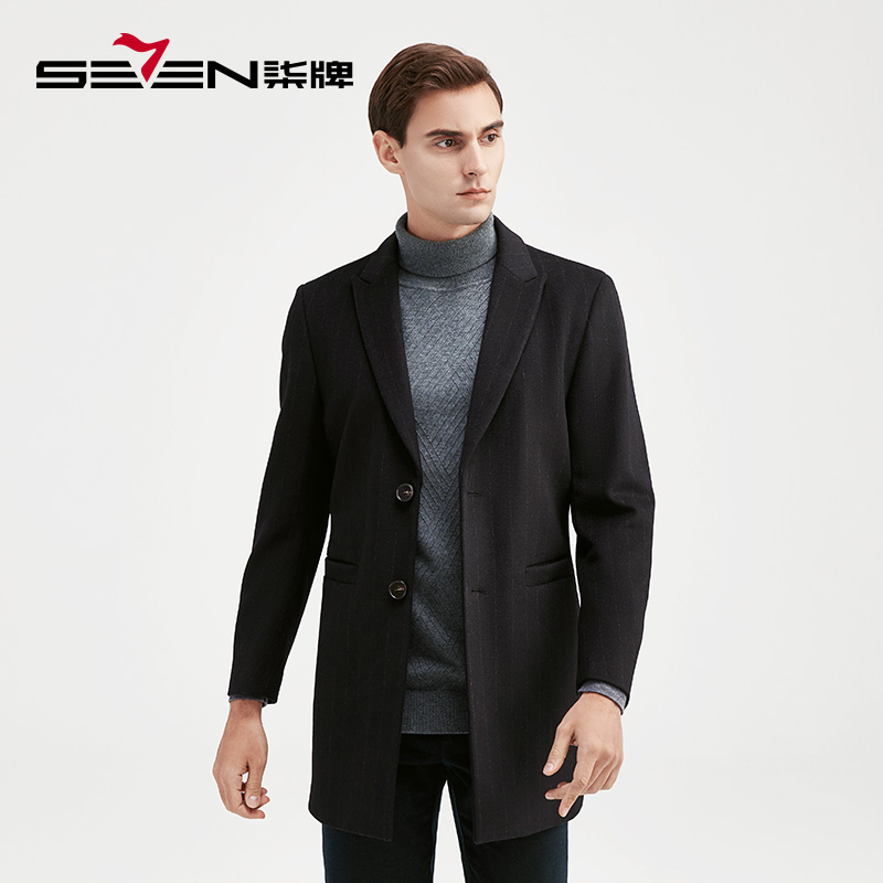 柒牌男装清仓外套冬季外套中青年男士中长款羊毛混纺呢防风大衣
