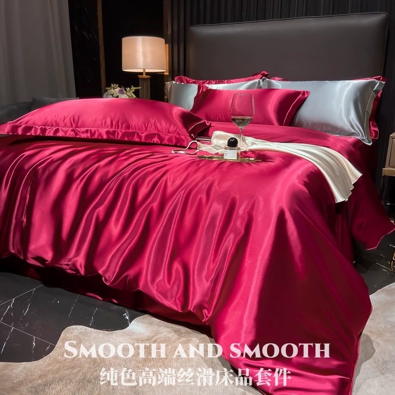 高端婚庆水洗真丝四件套中式结婚大红大紫陪嫁礼物天丝床上用品