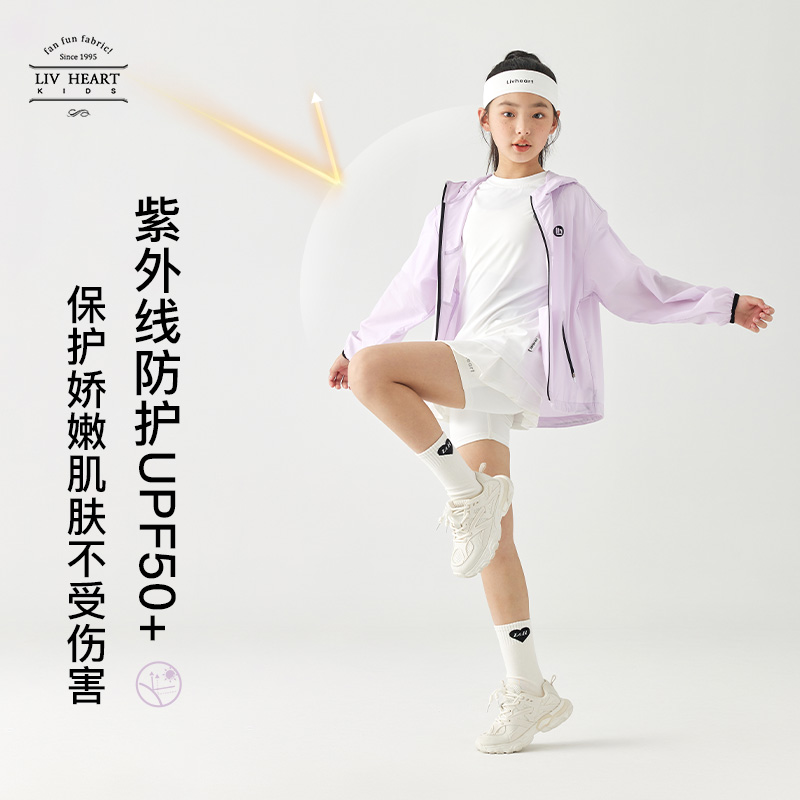 日本LIVHEART儿童薄款防晒衣外套女夏季户外运动皮肤衣防晒服女童