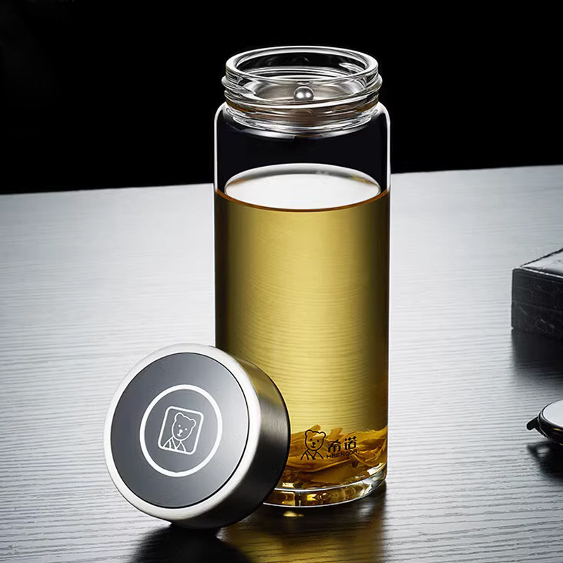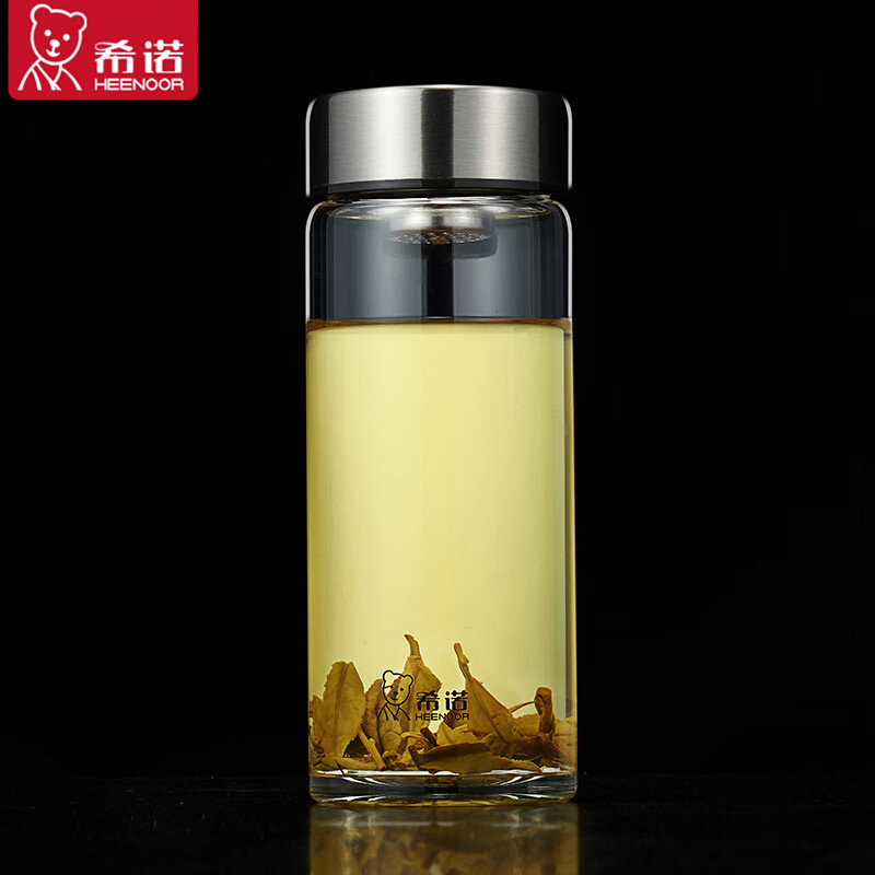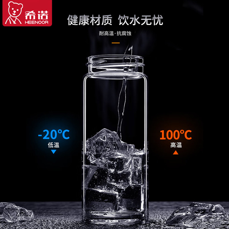 希诺玻璃杯单层加厚大容量家用透明水杯男办公便携带盖泡茶杯子