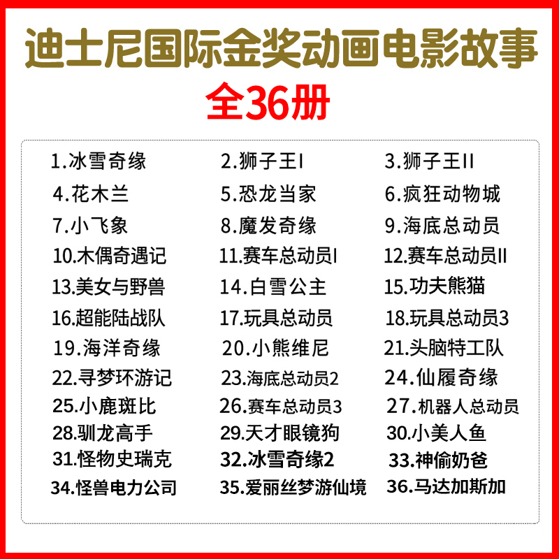 【全36册】迪士尼国际金奖动画电影故事注音版冰雪奇缘海底赛车总动员花木兰疯狂动物城狮子王寻梦环游记美女与野兽功夫熊猫