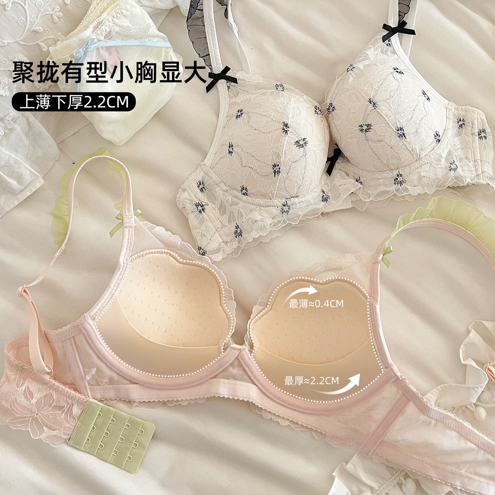 六只兔子花瓣杯内衣女小胸聚拢显大文胸法式性感蕾丝无钢圈胸罩