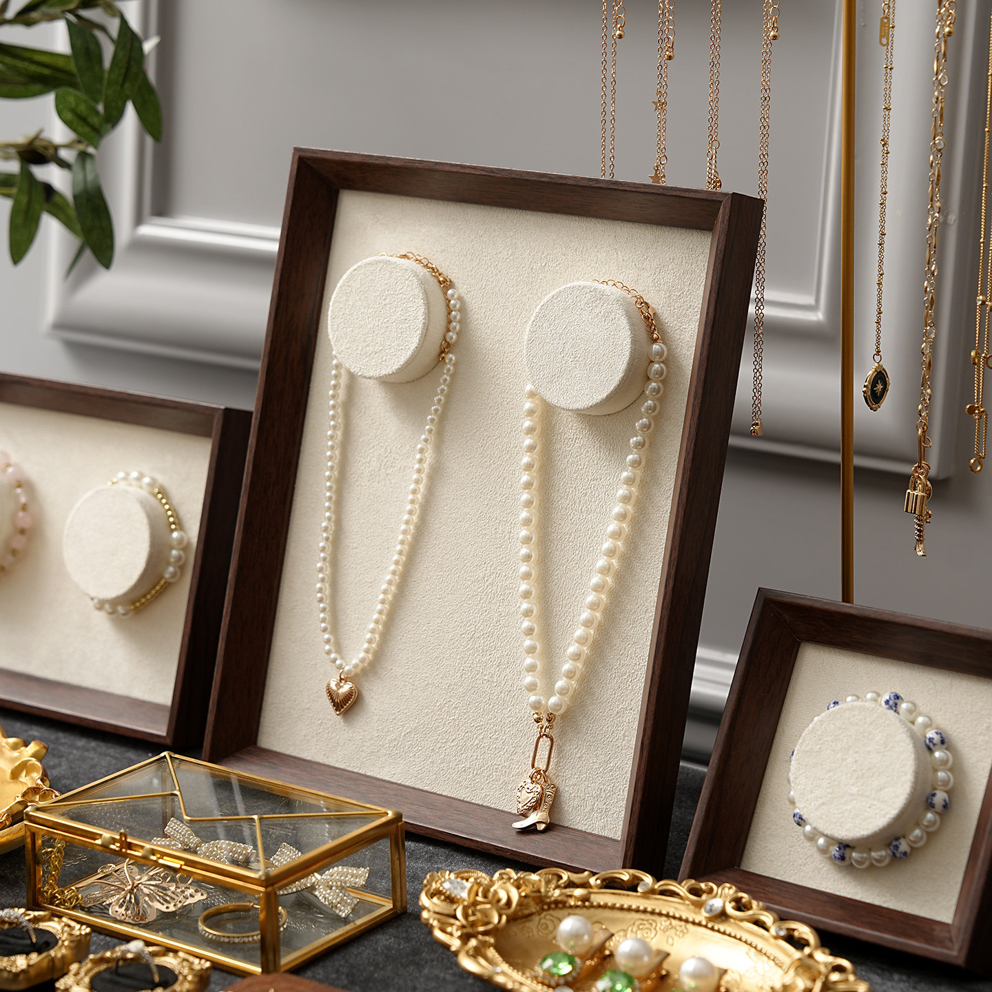 首饰展示架复古棕色相框手串项链架饰品托盘戒指托陈列拍摄道具