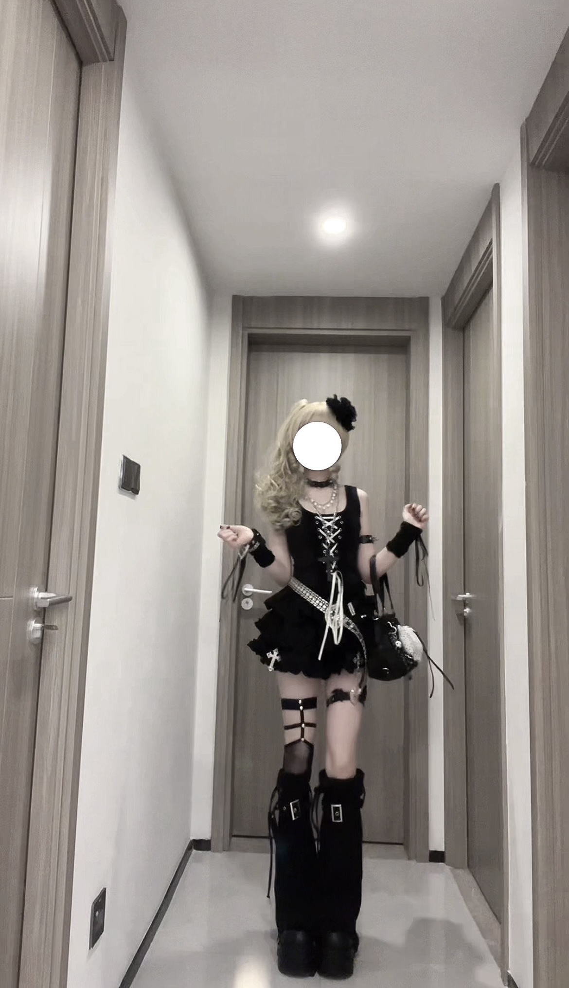 自制方领吊带背心哥特风蓬蓬裙y2k亚文化万圣节涩谷芭蕾风蛋糕裙