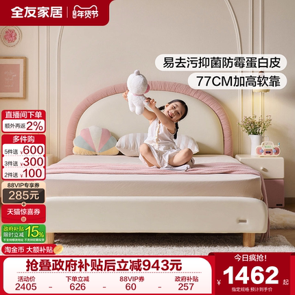全友家居现代简约软包儿童床2025新款女孩卧室公主床小户型单人床