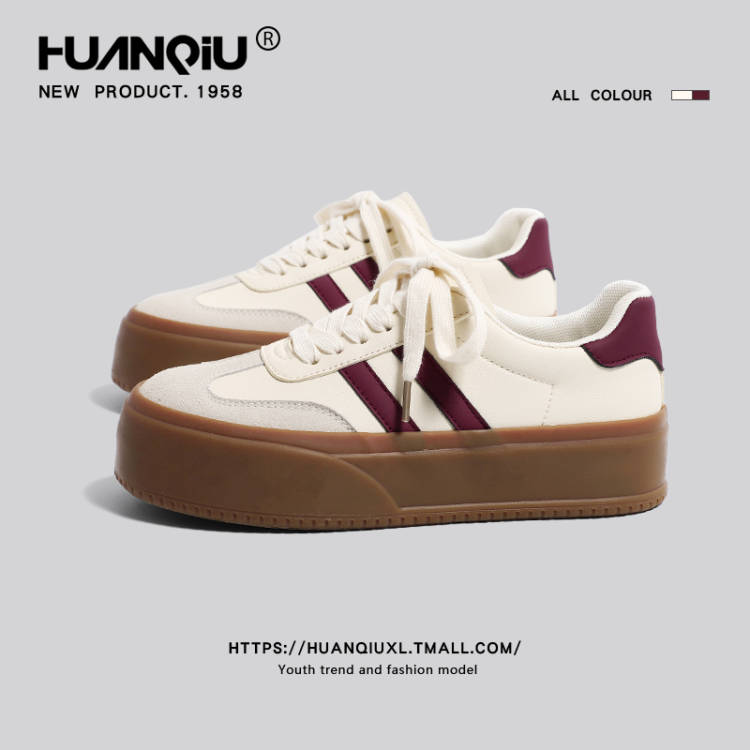 环球厚底德训鞋女2025超火复古撞色增高低帮圆头系带白色休闲板鞋