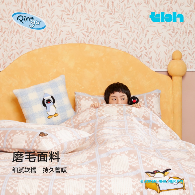 tbh野兽派家居床上四件套Pingu合作系列全棉磨毛秋冬床上用品套件