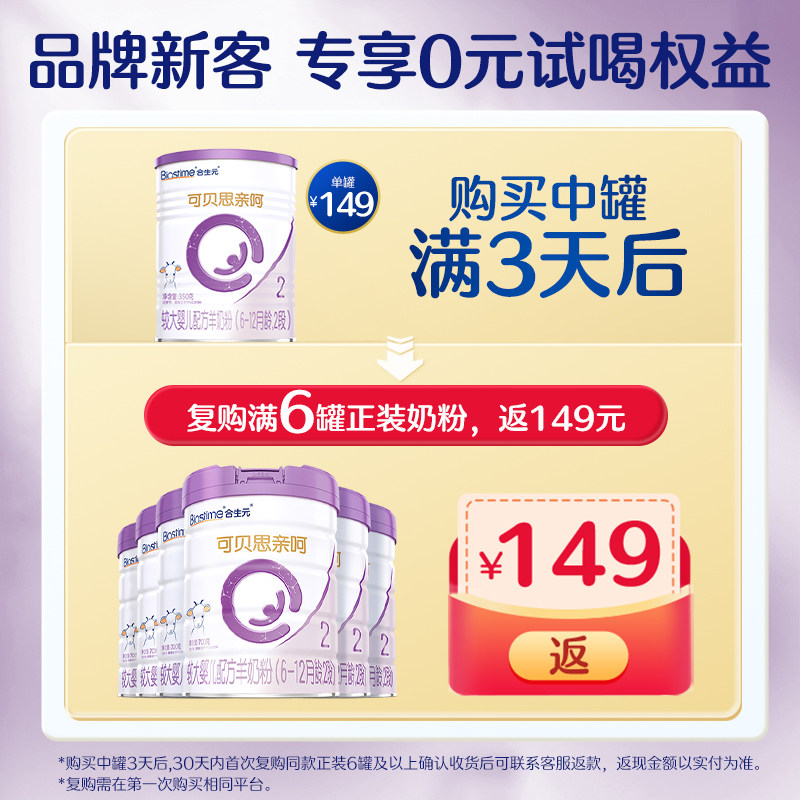 合生元可贝思亲呵新国标较大婴儿羊奶粉2段350g纯羊乳蛋白
