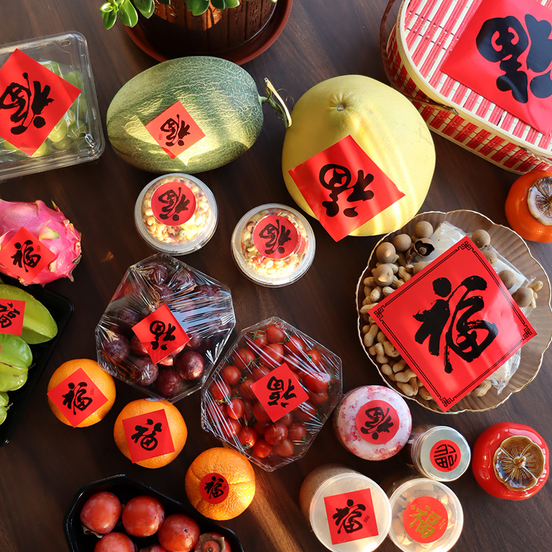 新年小福字贴纸春节福贴奶茶水果花卉烘焙外卖包装封口贴过年装饰