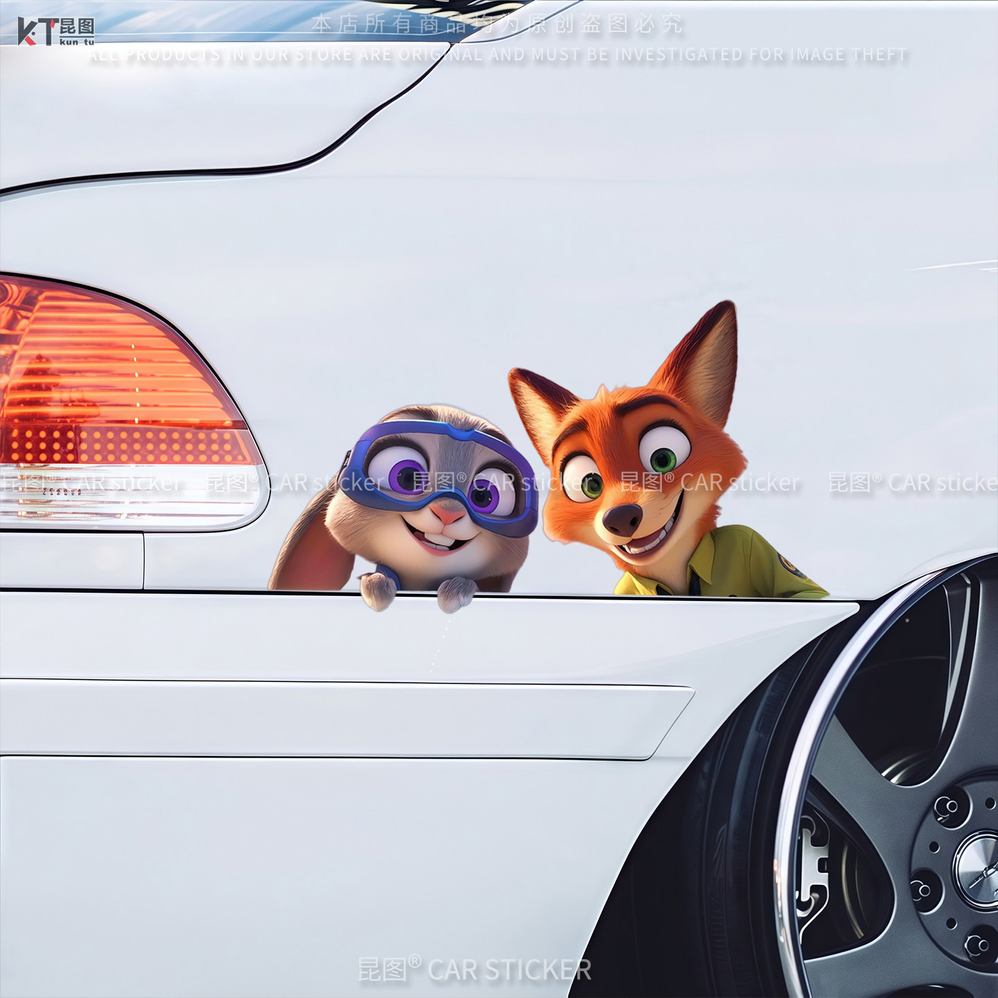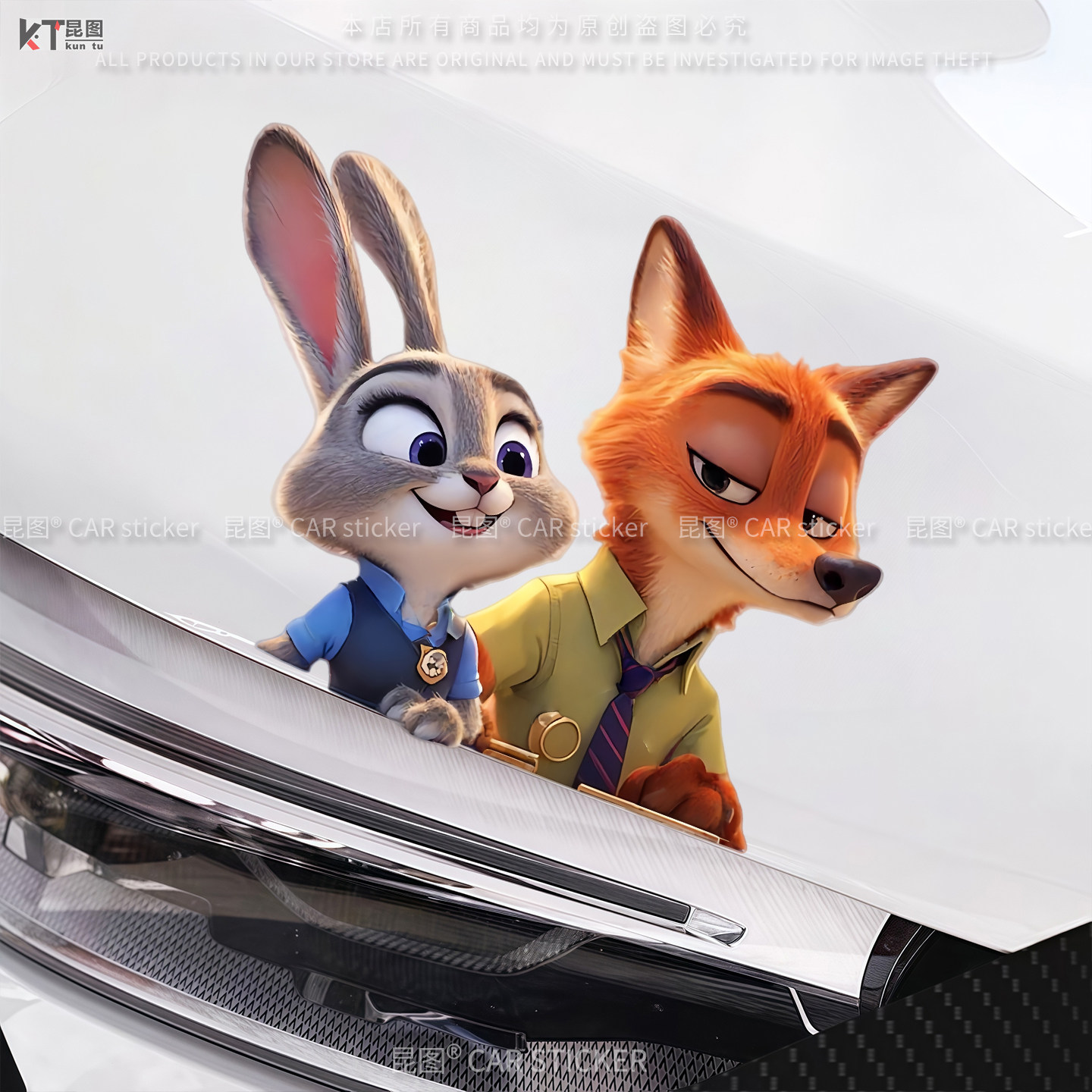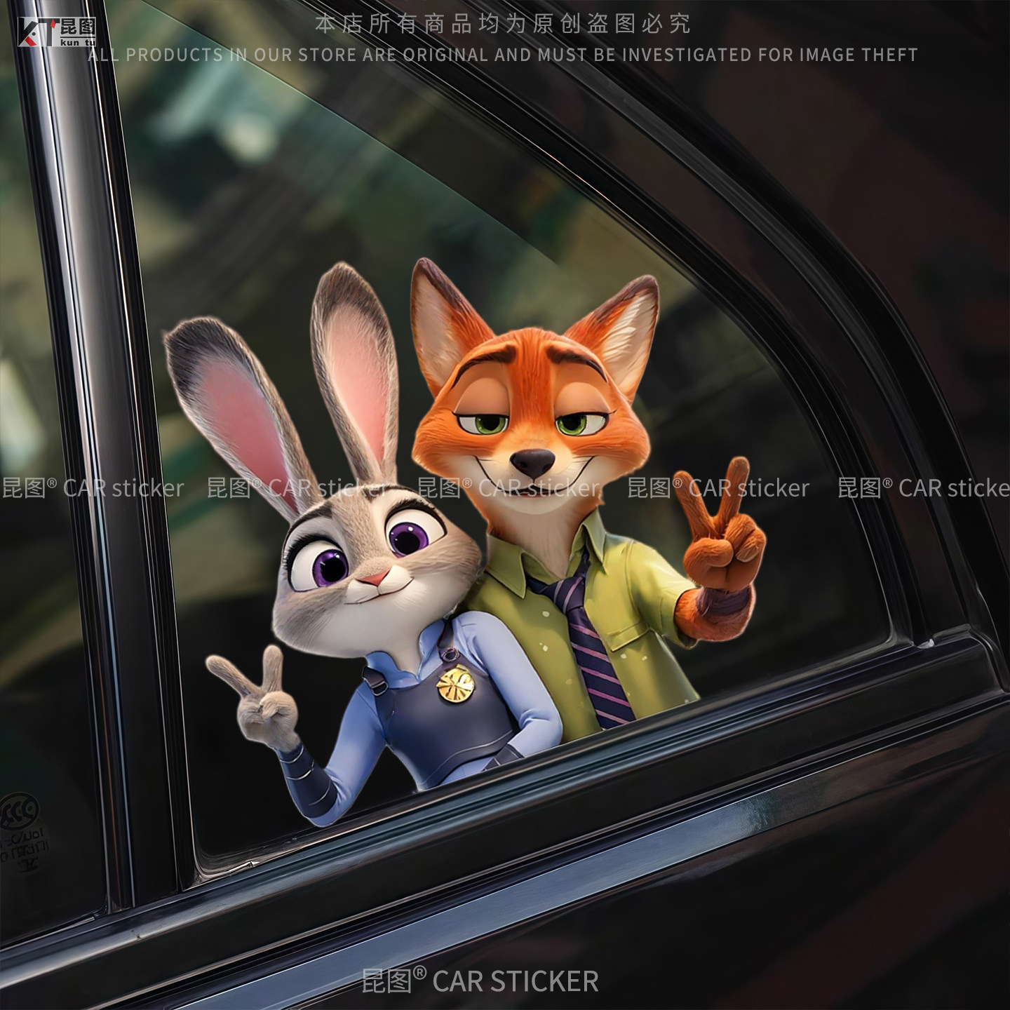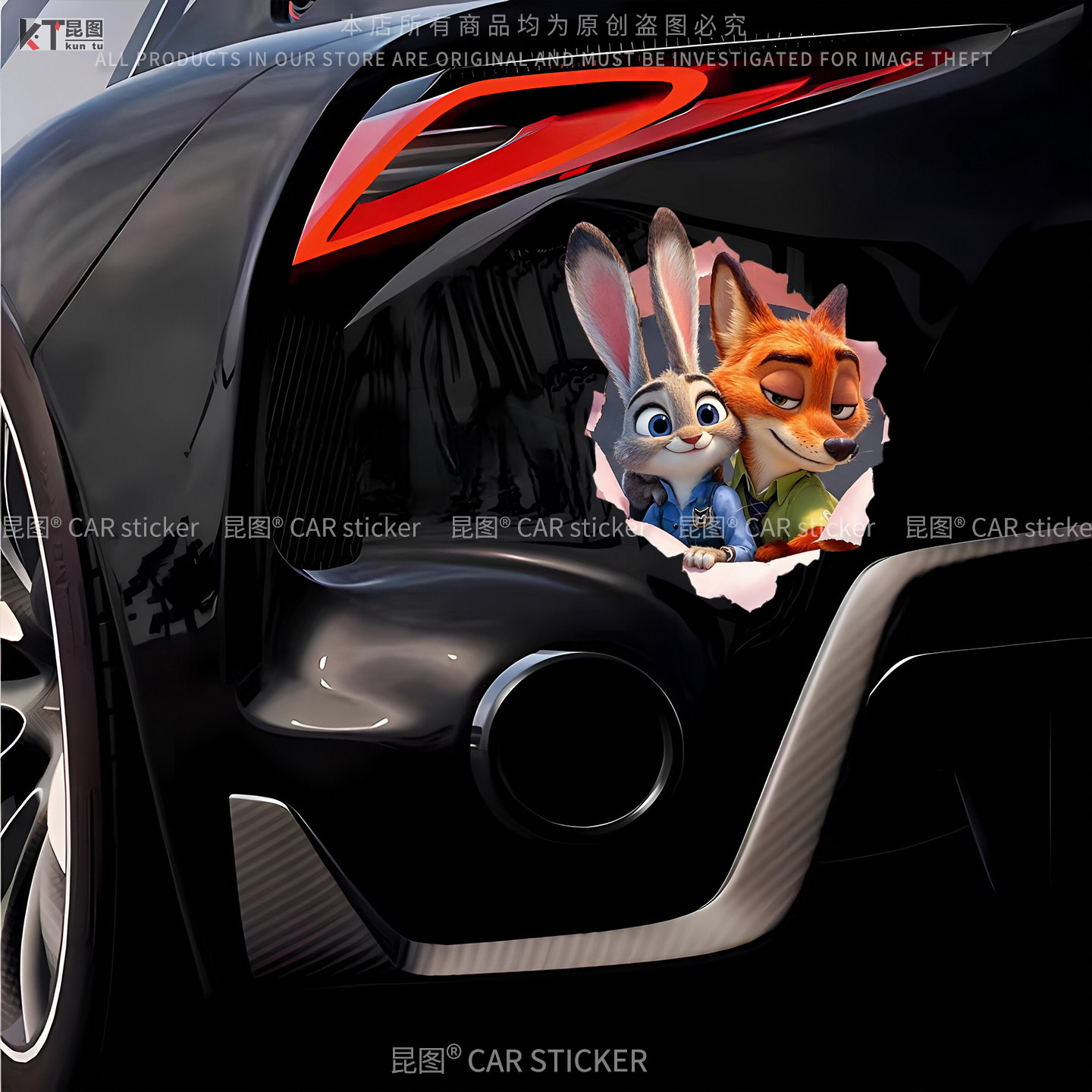 疯狂动物城汽车贴纸尼克朱迪卡通装饰车窗玻璃遮刮痕电动车行李箱