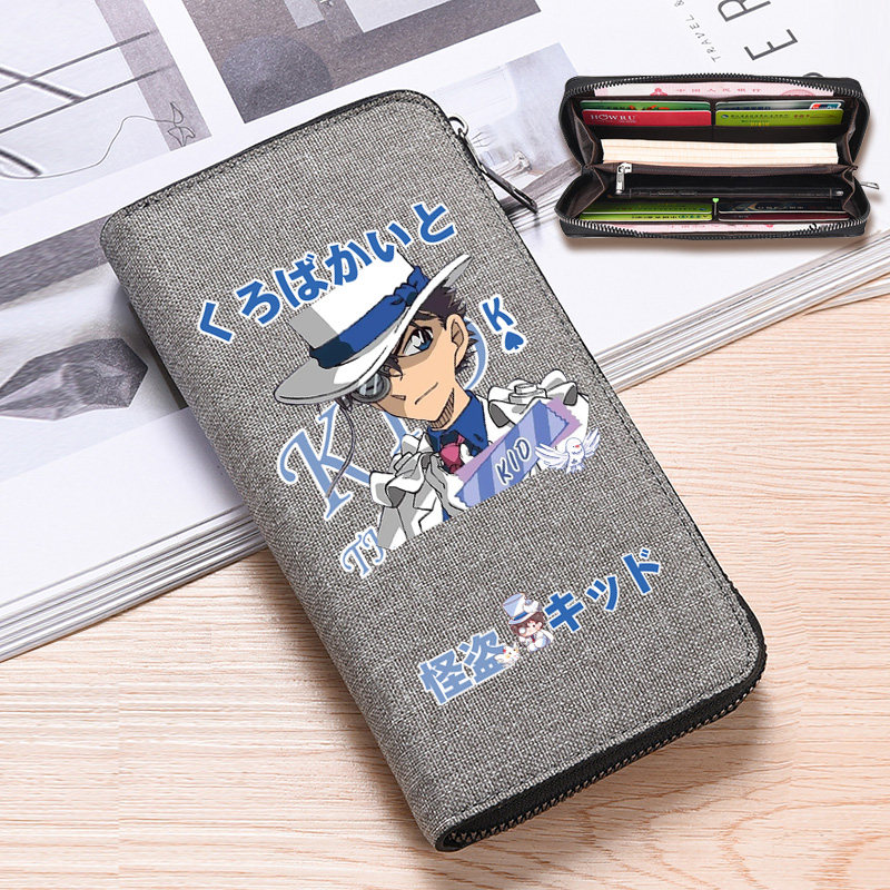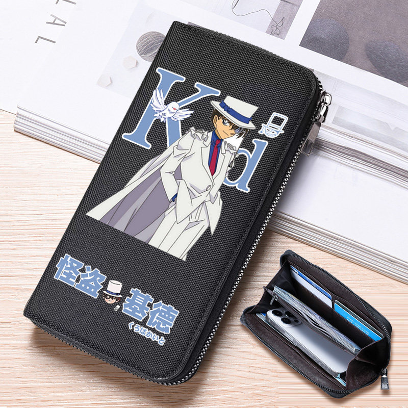 柯南名侦探基德周边零钱包男女学生钱包长款卡包初中生卡通帆布包