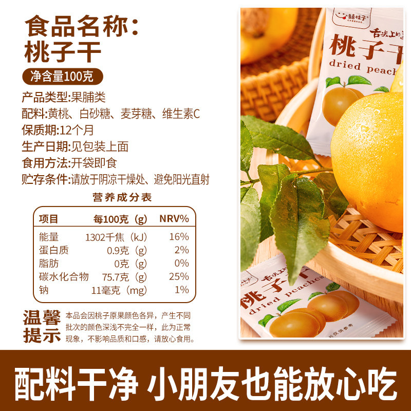 黄桃干厚切桃子干独立包装无添加果脯蜜饯桃子肉孕妇儿童休闲零食