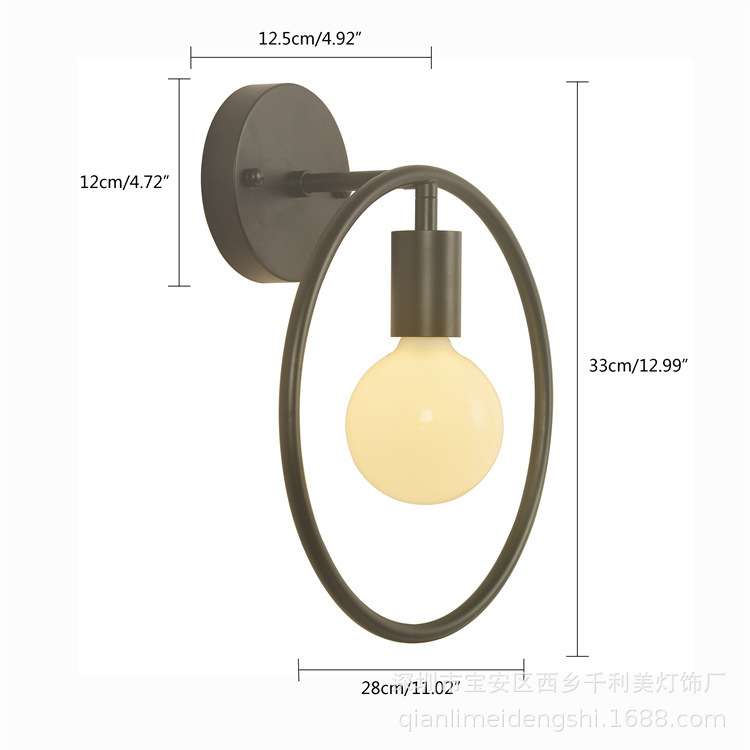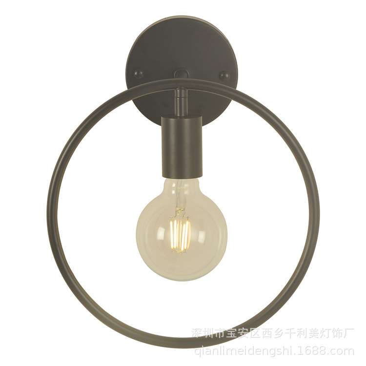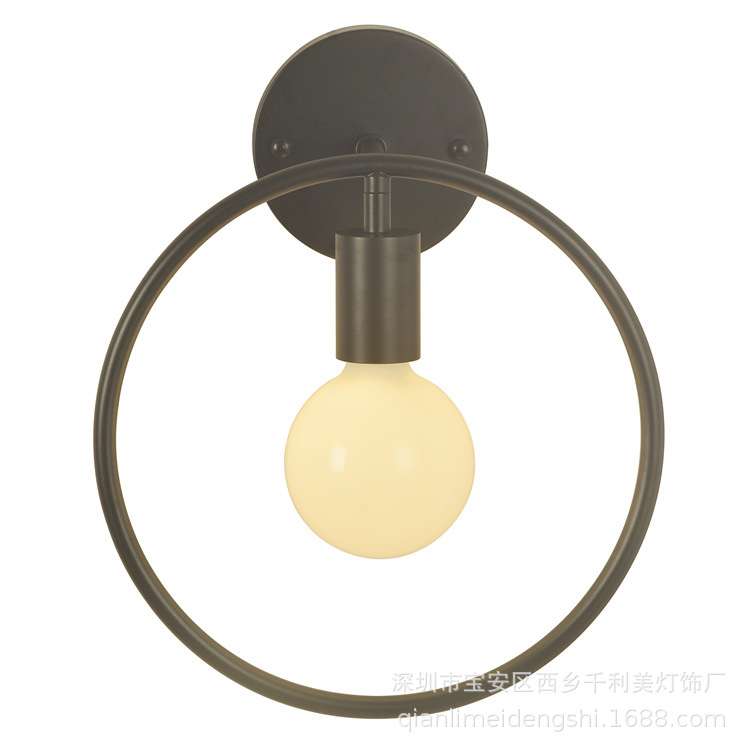 美式复古创意单头圆圈壁灯艺术餐厅过道书房卧室床头简约铁艺壁灯