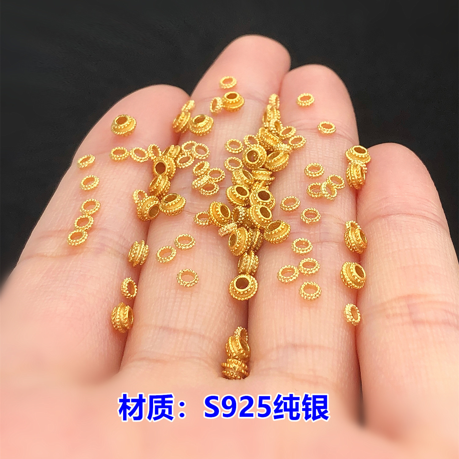 s925纯银镀金精工迷你隔珠隔珠垫片水晶文玩编手绳串项链diy配件