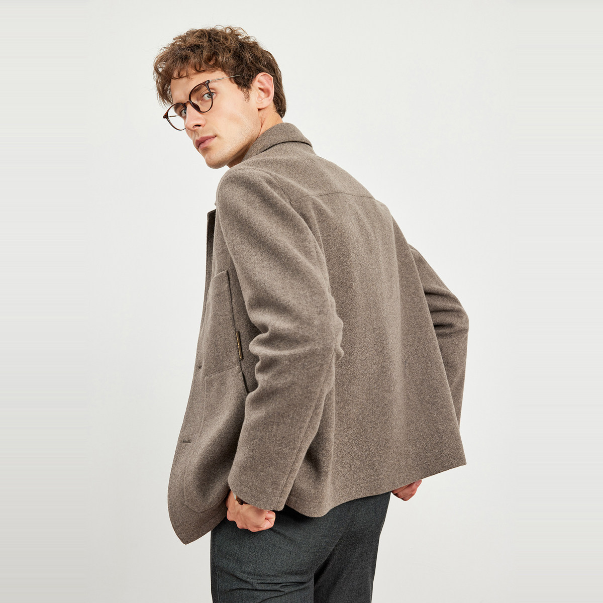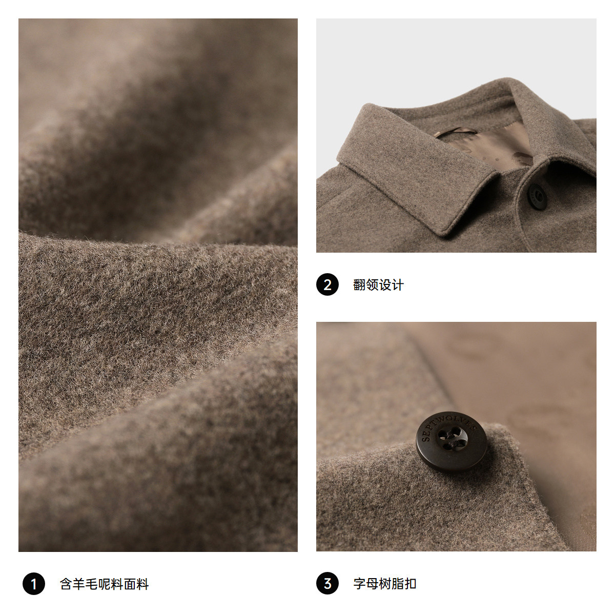七匹狼官方正品翻领夹克高档男装秋冬休闲保暖品质干部羊毛呢外套