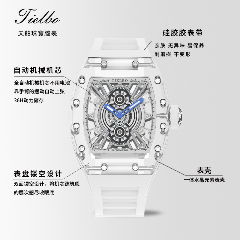 TIELBO/天舶 冰魄823手表男时尚情侣表全自动机械镂空防水腕表