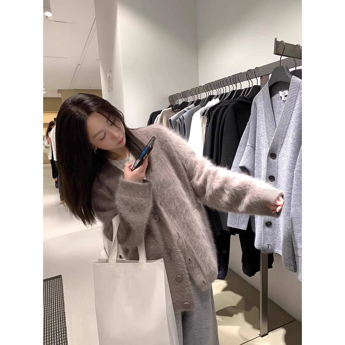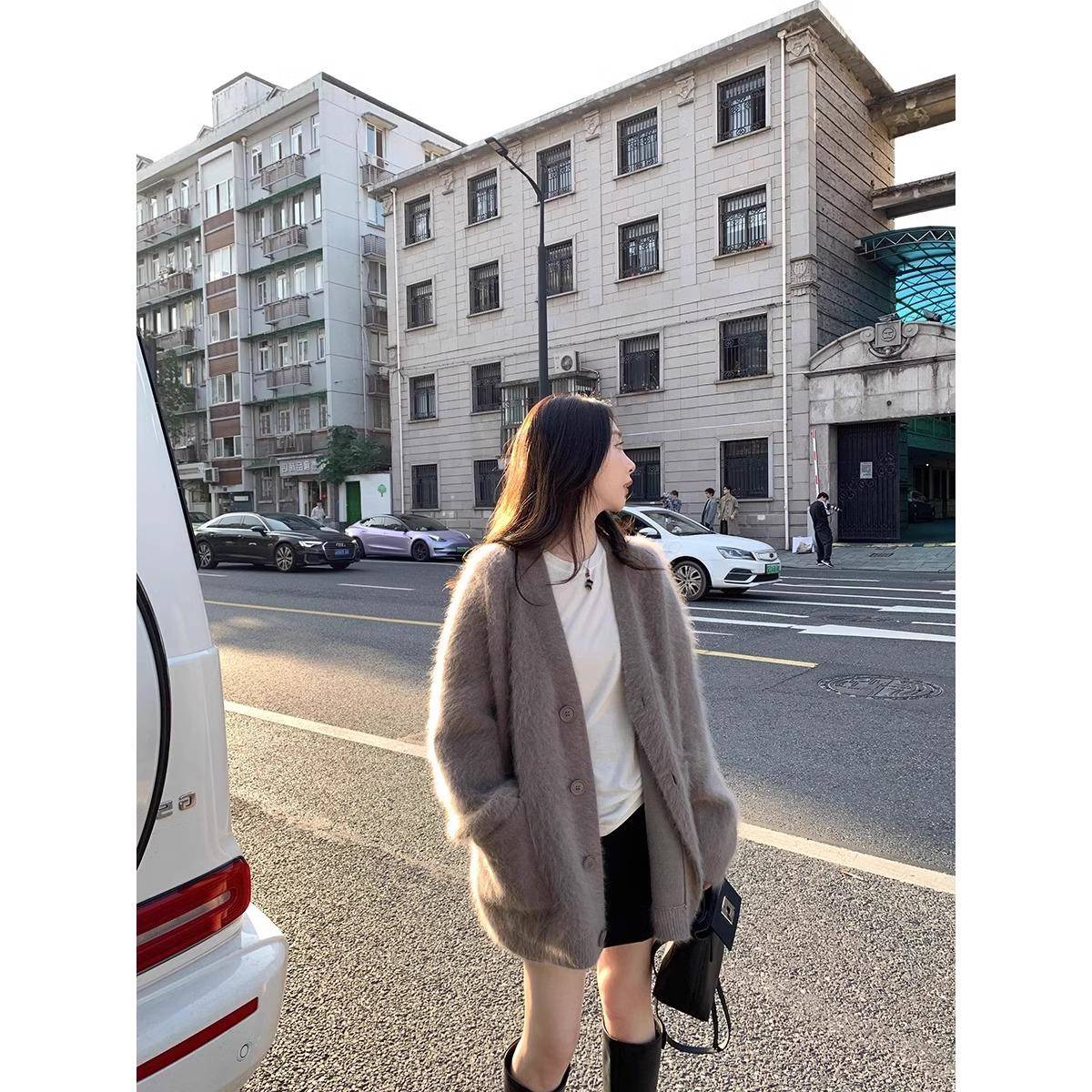 美拉德驼色水貂绒毛衣外套女2024秋冬韩系慵懒中长款针织开衫加厚