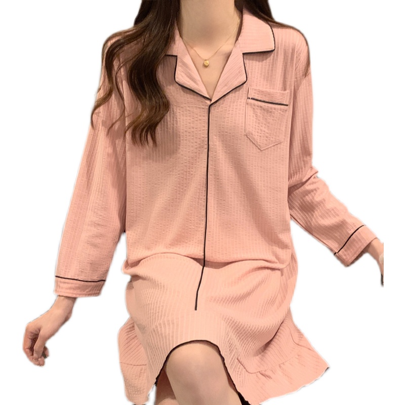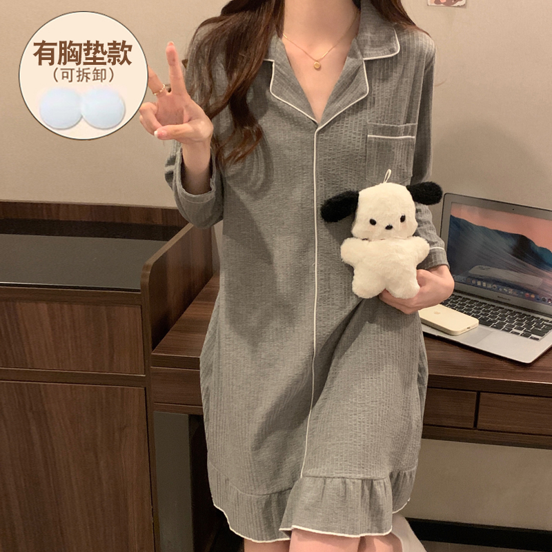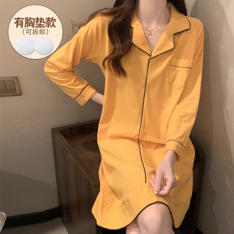 睡裙女春秋款带胸垫一体纯棉长袖韩版宽松学生简约2023新款家居服