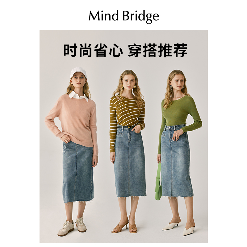 Mind Bridge2025年复古高腰开叉牛仔裙秋季长款半身裙女士裙子