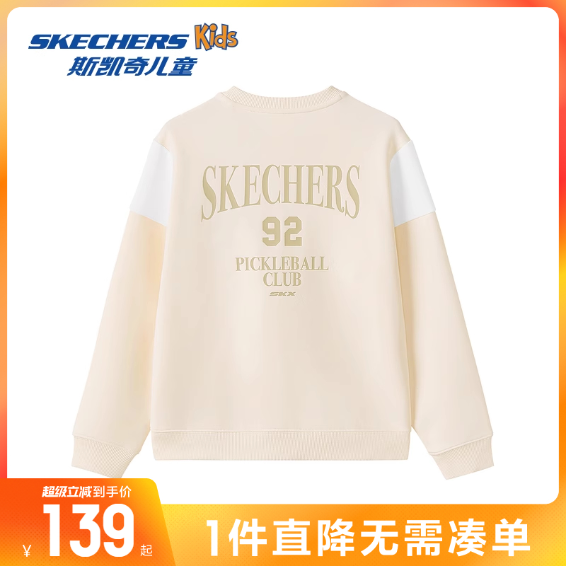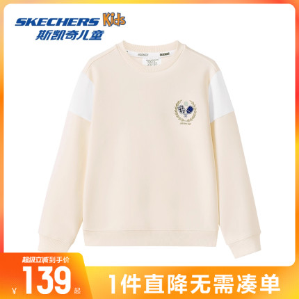 斯凯奇outlets男童春秋新款圆领运动套头卫衣儿童时尚针织上衣